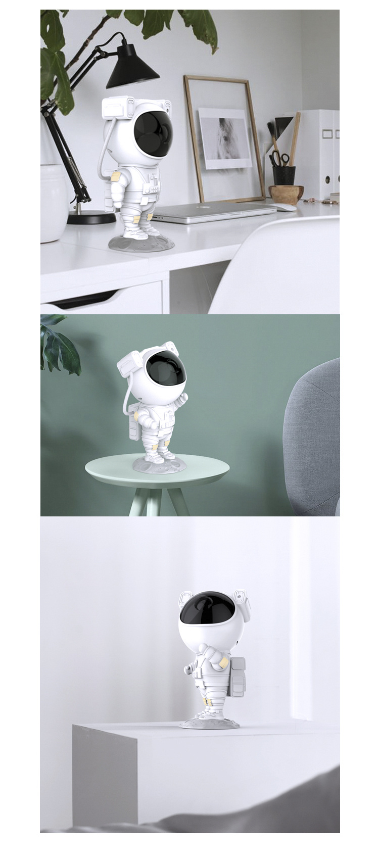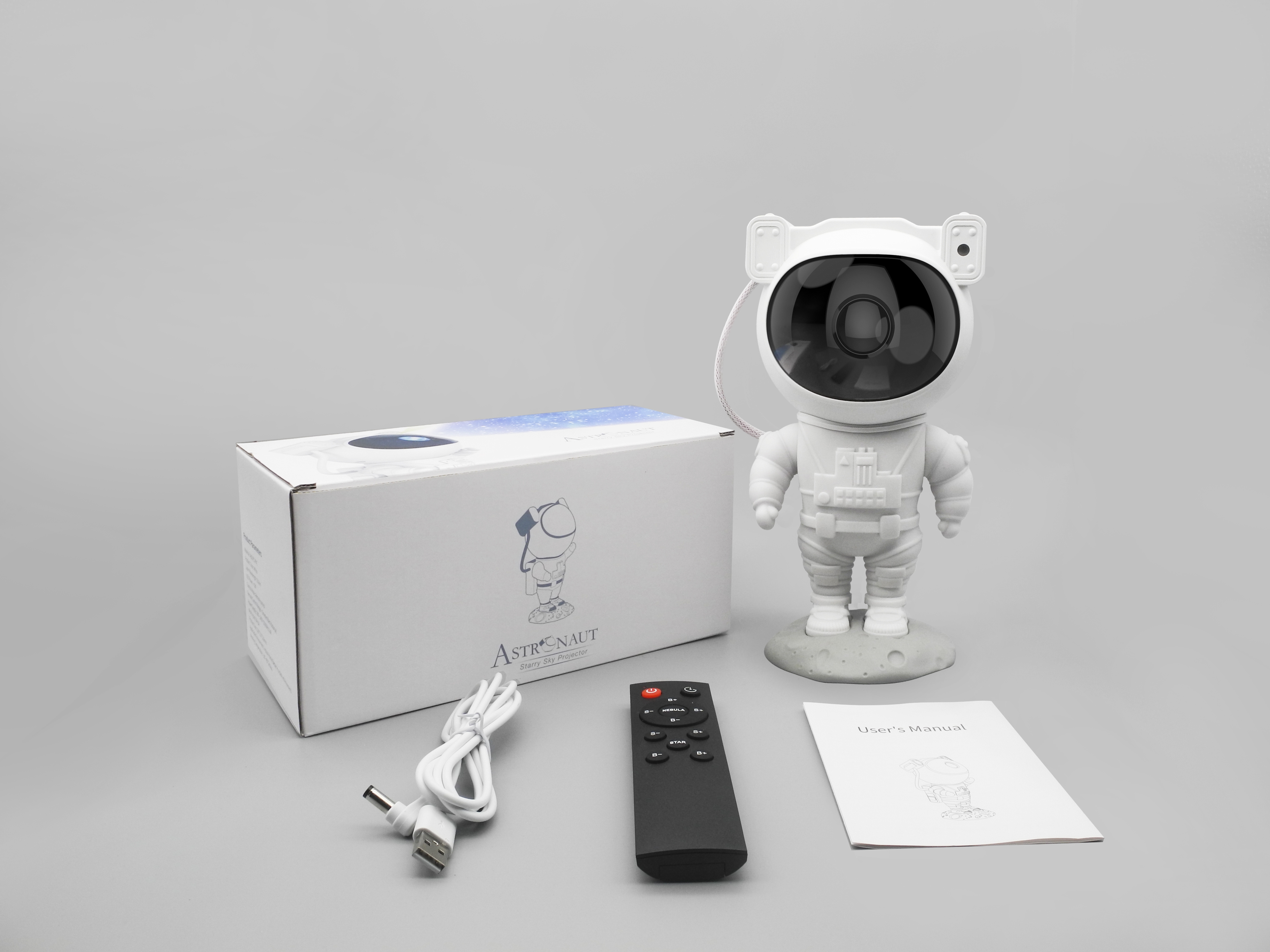 Hlavu astronauta lze otáčet o 360°.  Světelný projektor je možné ovládat pomocí dálkového ovládání. Jistě oceníte možnost časovače, který projekci po dané době vypne.