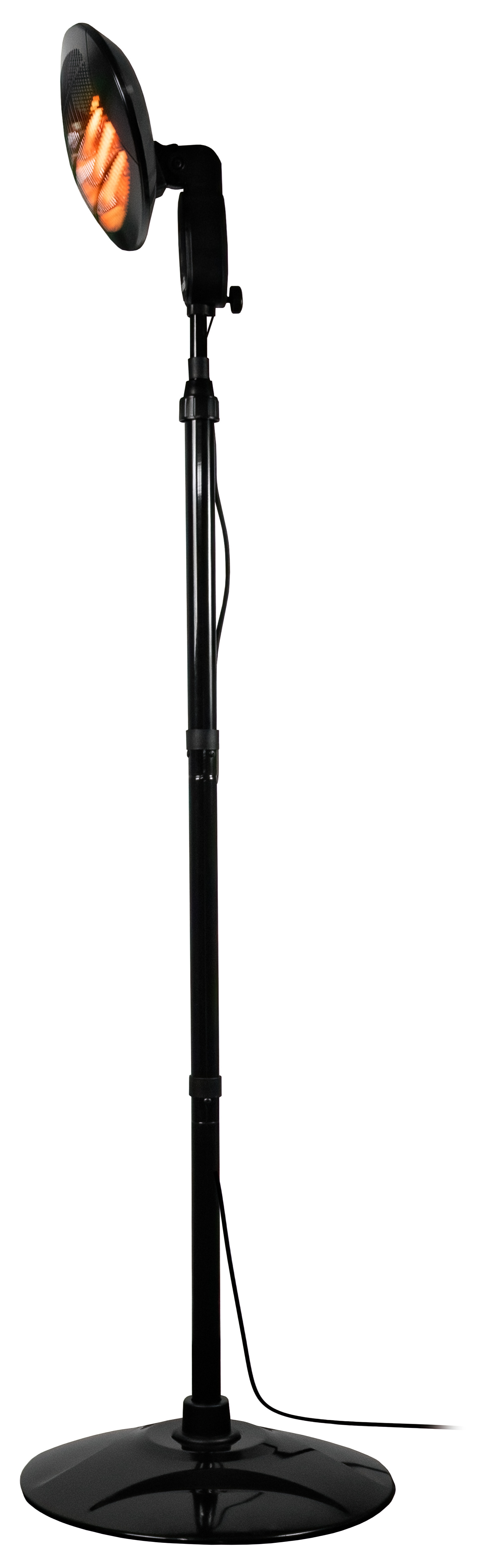 Teleskopický stojan lze vytáhnout o 30 cm. Dále lze topné těleso naklonit v úhlu 45°, aby červené světelné záření vyzařovalo z boku nebo shora.