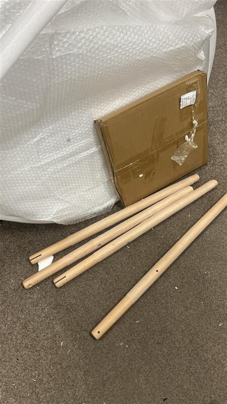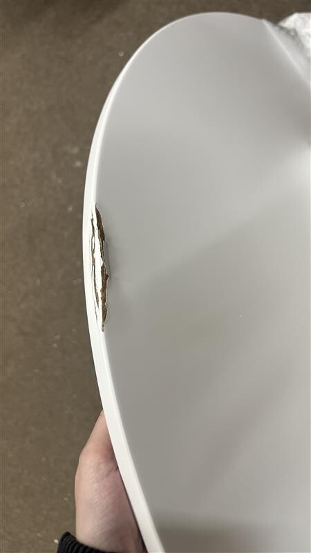Zboží má silné naražení na hranu při přepravě, odštípnuté dřevo i barvu – viz fotografie.
