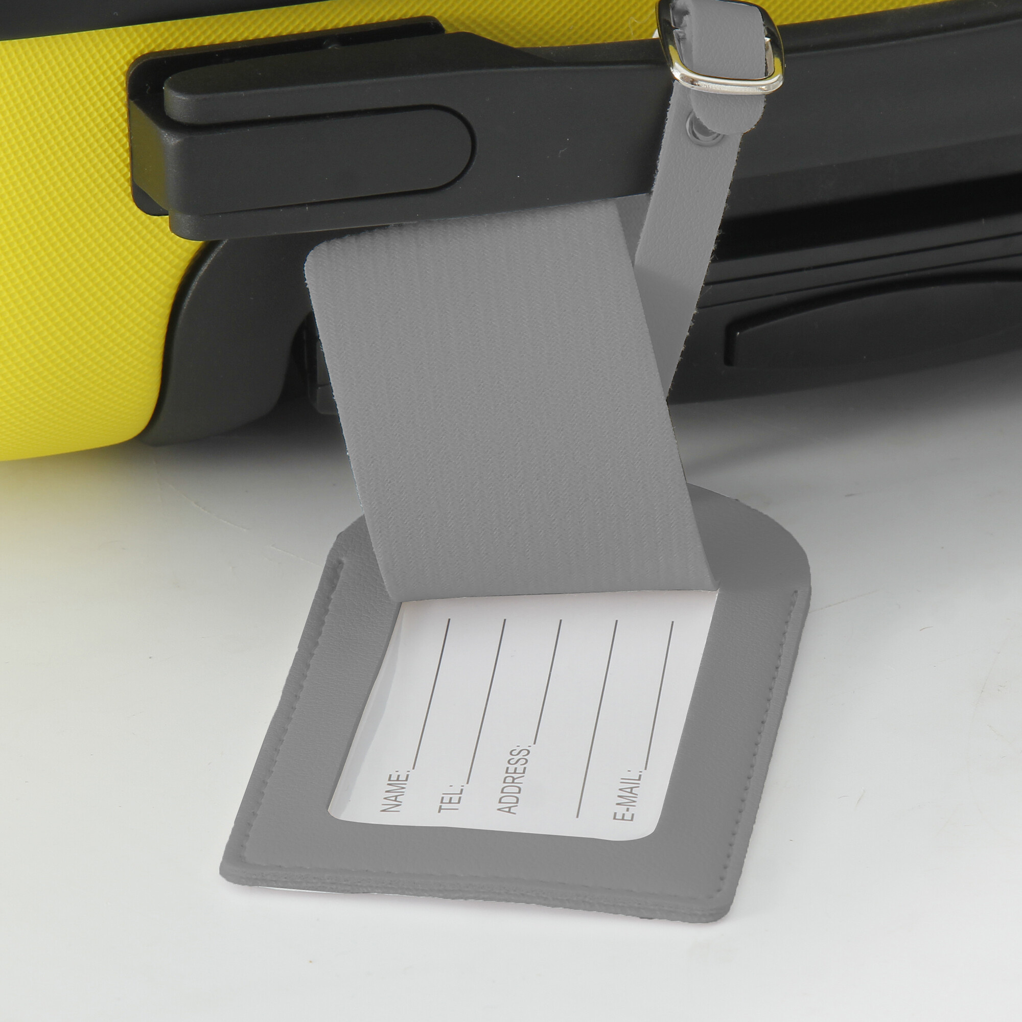 Upínací pásek s bezpečnostní sponou zaručuje, že jmenovka zůstane na vašem zavazadle pevně uchycena.