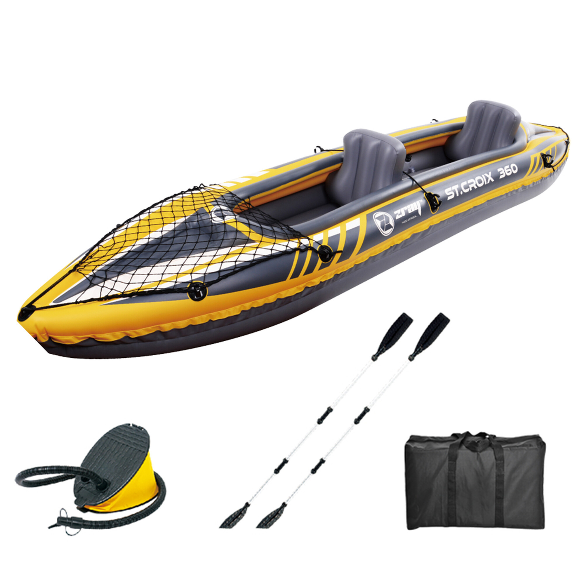 Nafukovací kajak je vyrobeny z pevného PVC o tloušťce 0,55 mm, což zajišťuje jeho dlouhou životnost a odolnost proti poškození. Po nafouknutí má délku cca 350 cm, šířku 78 cm a výšku 52 cm.