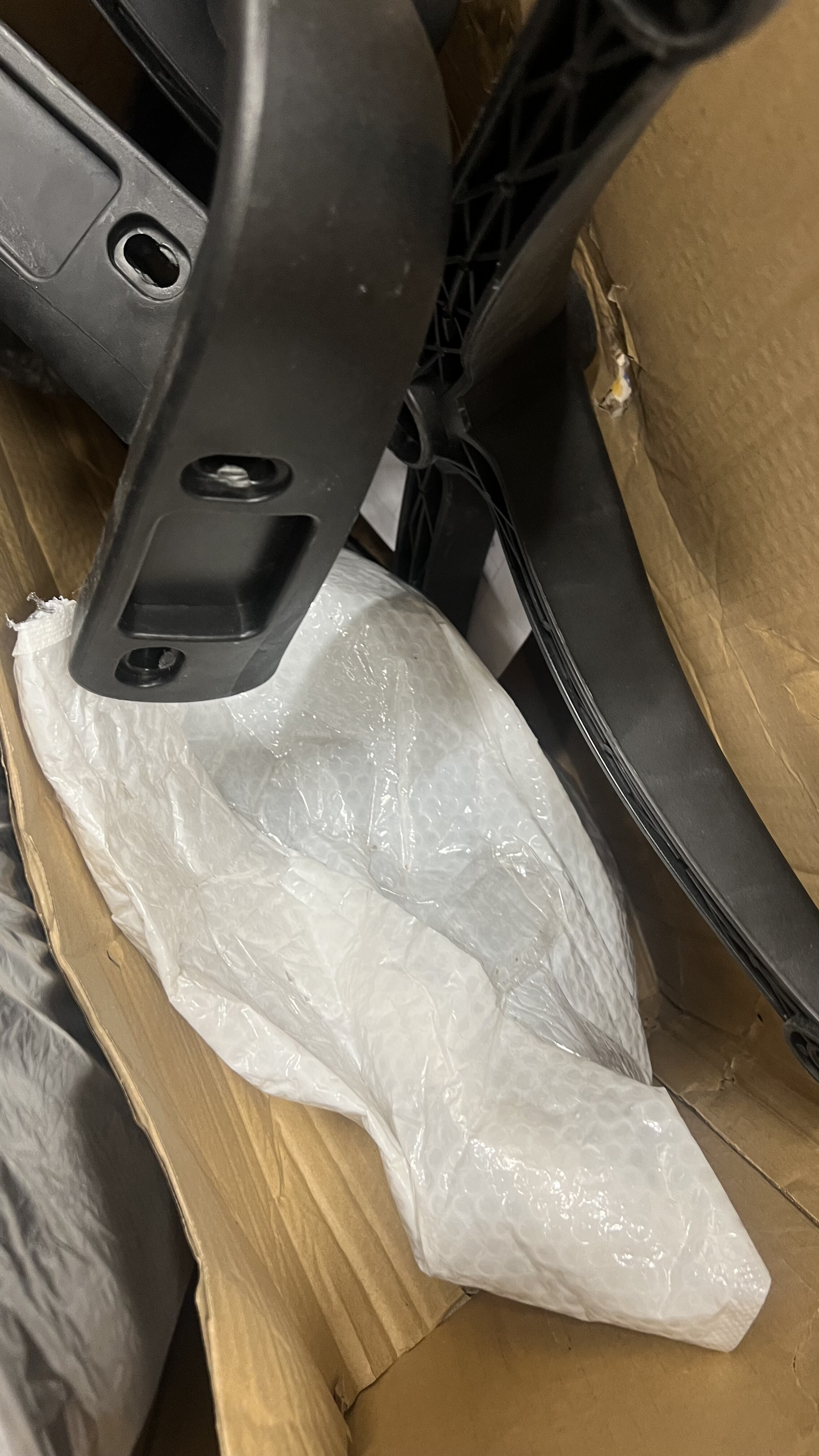 V opěradle se nachází malá díra. Židle může být mírně zaprášená a lehce podřená. Uvedené nedostatky nemají vliv na funkčnost ani bezpečné používání židle.