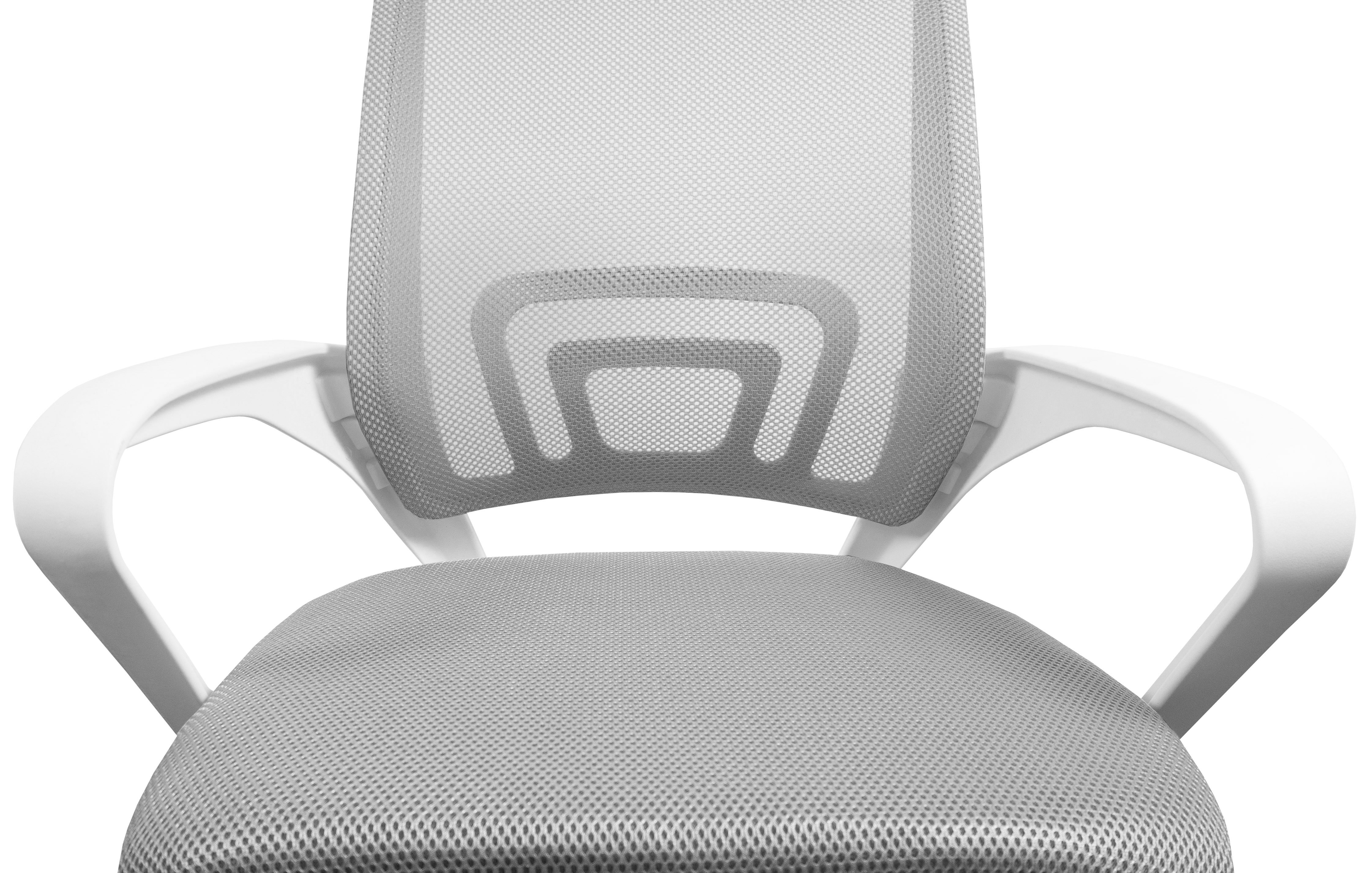 Kancelářská židle bez podhlavníku, která je vyrobená v šedo - šedé barvě v kombinaci síťoviny a plastu.