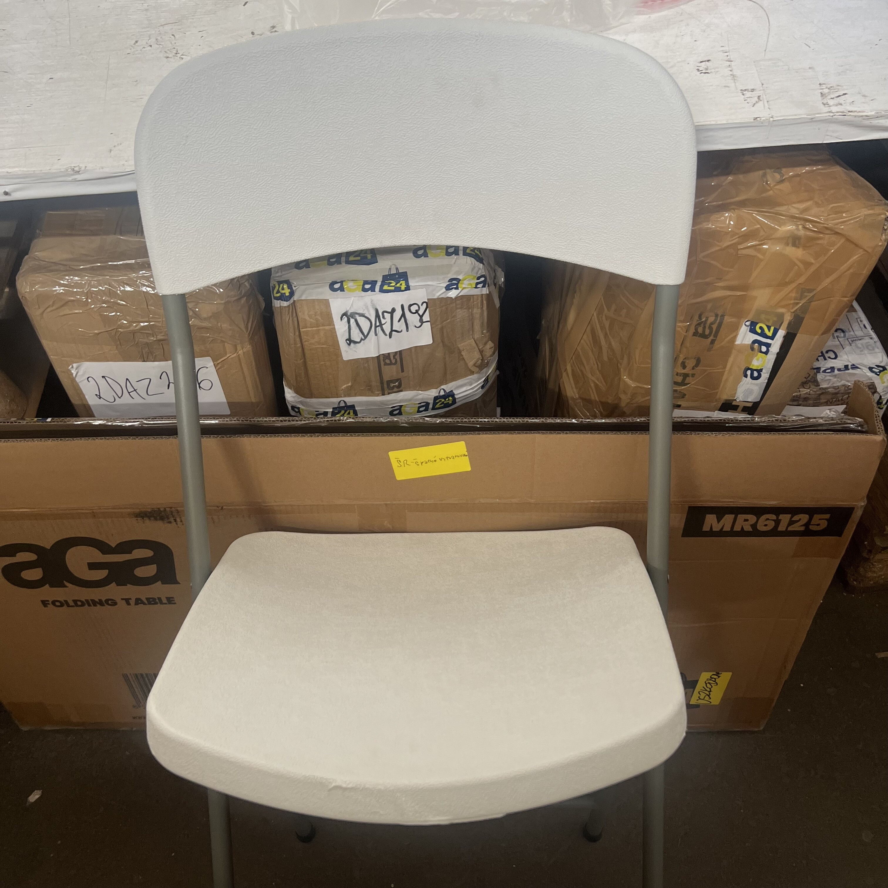 Židle je mírně znečištěná a má mírně odřenou konstrukci.