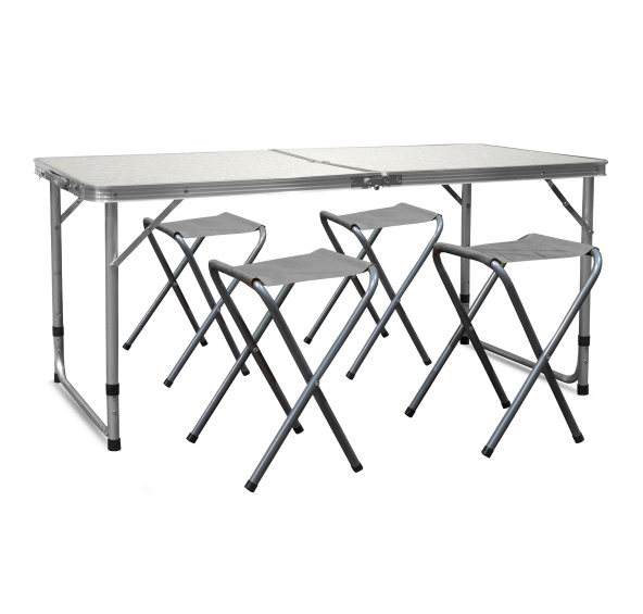- Ve sbaleném stavu je stůl židle snadno přenosný v podobě ploché desky s uchem