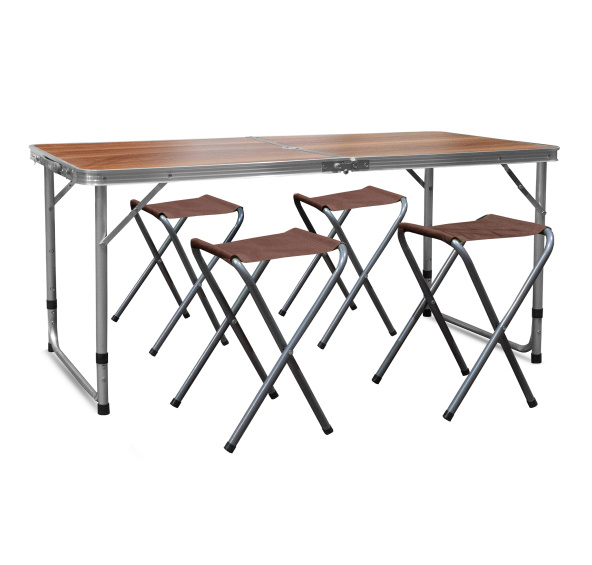 - Ve sbaleném stavu je stůl židle snadno přenosný v podobě ploché desky s uchem