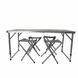 - Ve sbaleném stavu je stůl židle snadno přenosný v podobě ploché desky s uchem
