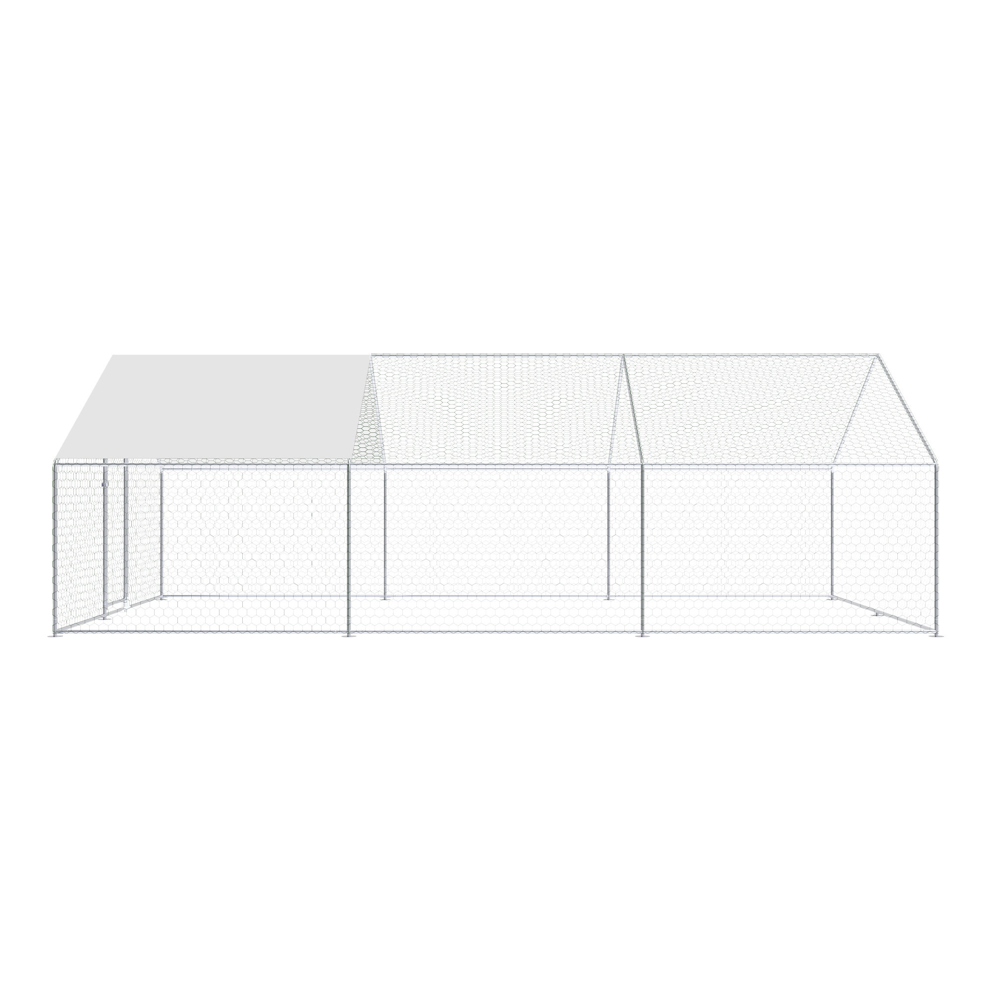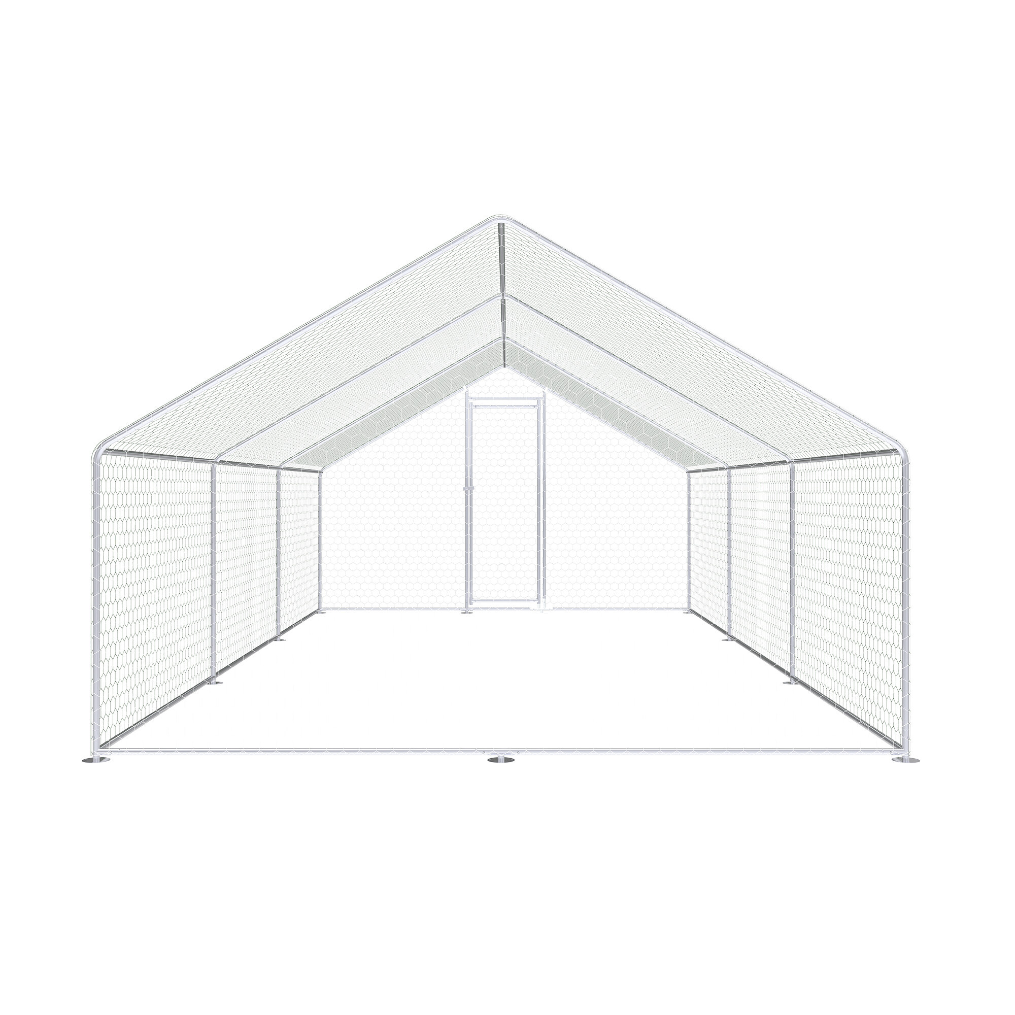 Výběh pro drůbež je vyroben z pevné konstrukce z pozinkované oceli, která je odolná vůči korozi a vhodná pro dlouhodobé venkovní použití. Díky tomu si konstrukce zachovává svou funkčnost i při pravidelném vystavení povětrnostním podmínkám. Celý výběh je doplněn o pozinkované pletivo, které slouží jako ochranná síť pro slepice, kachny i další drobná zvířata a zároveň pomáhá chránit zvířata před predátory.