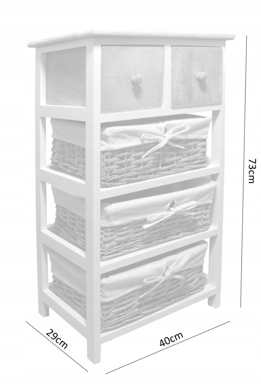 Komoda má dvě zásuvky a tři proutěné košíky, poskytuje dostatek úložného prostoru. Můžete ji využít kdekoli v místnosti, ať už ve vašem obývacím pokoji, chodbě nebo ložnici.