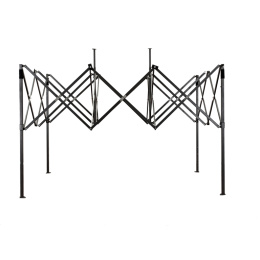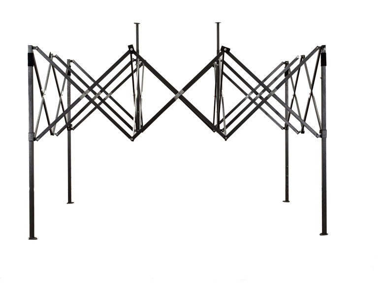 Konstrukce je vyrobená z pevných kovových práškově lakovaných profilů čtvercového tvaru. Nohy konstrukce stánku jsou ve spodní části opatřeny patkami s otvory sloužícími pro ukotvení k pevnému povrchu.