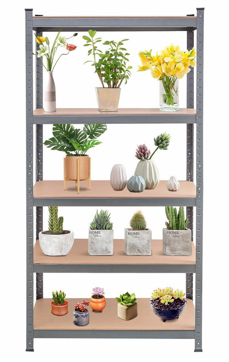 Na výšce cca 172 cm máte k dispozici 5 polic z mdf, které lze výškově vložit dle potřeby. Rám z galvanizované oceli ve stříbrné barvě zaručuje stabilitu a velkou nosnost cca 375 kg (na každou polici připadá cca 75 kg).
