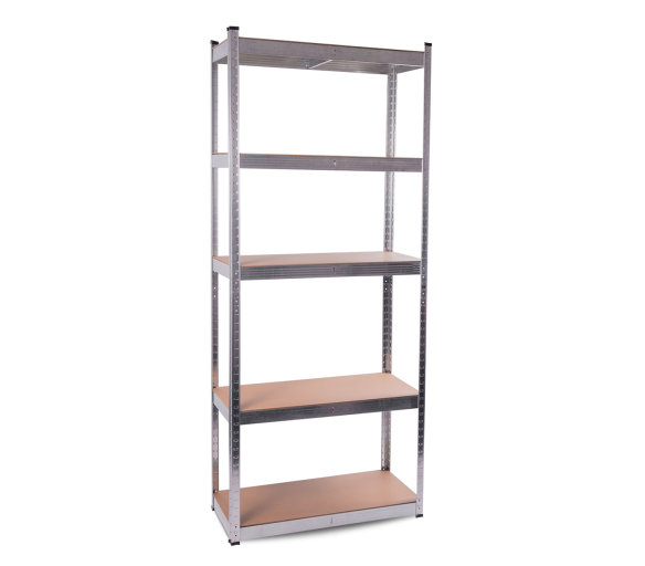 Na výšce cca 174 cm máte k dispozici 5 polic z mdf, které lze výškově vložit dle potřeby. Rám z galvanizované oceli ve stříbrné barvě zaručuje stabilitu a velkou nosnost cca 375 kg (na každou polici připadá cca 75 kg).