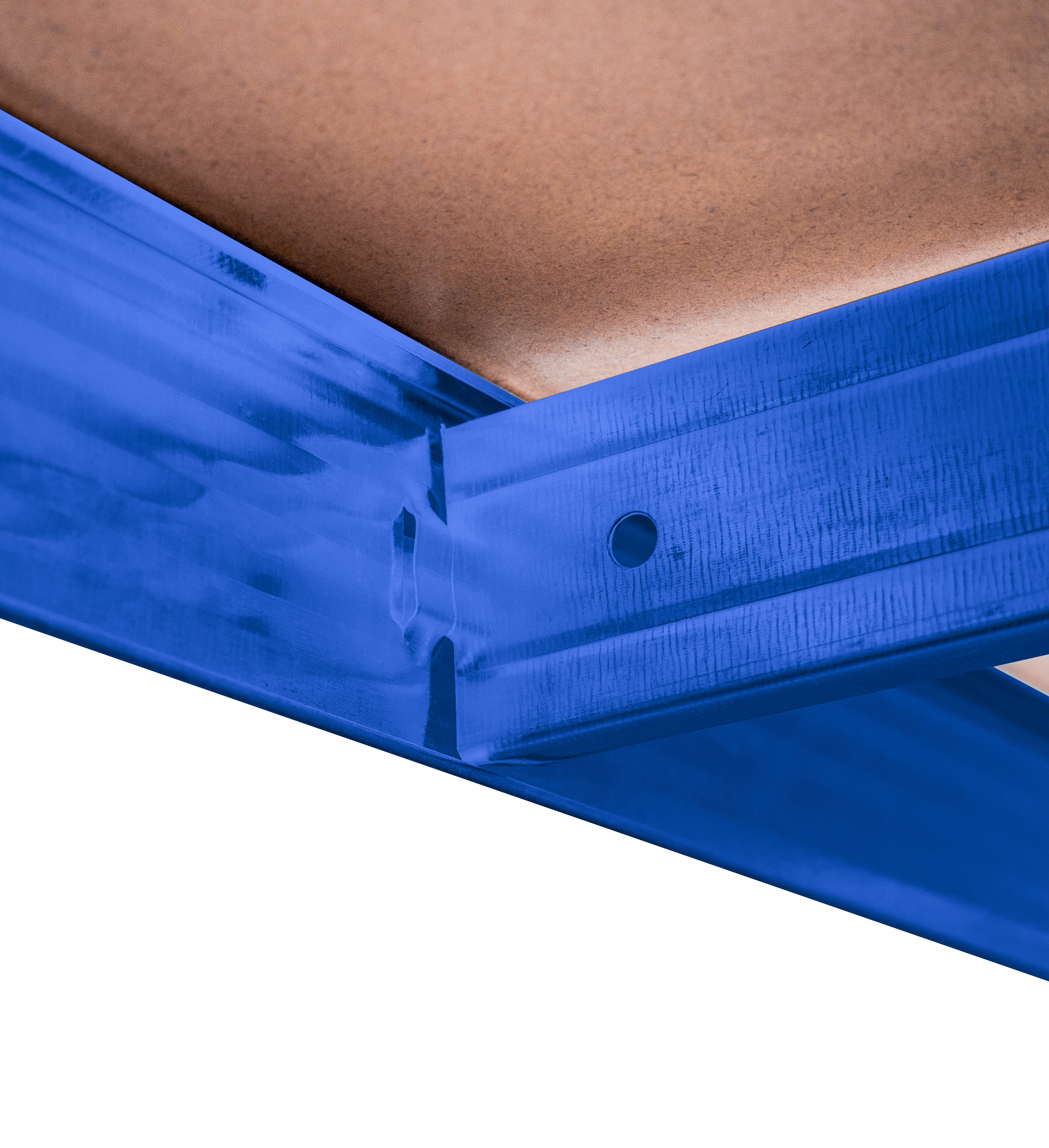 Na výšce cca 180 cm máte k dispozici 5 polic z mdf, které lze výškově vložit dle potřeby. Rám z galvanizované oceli v modré barvě zaručuje stabilitu a velkou nosnost cca 875 kg (na každou polici připadá cca 175 kg).