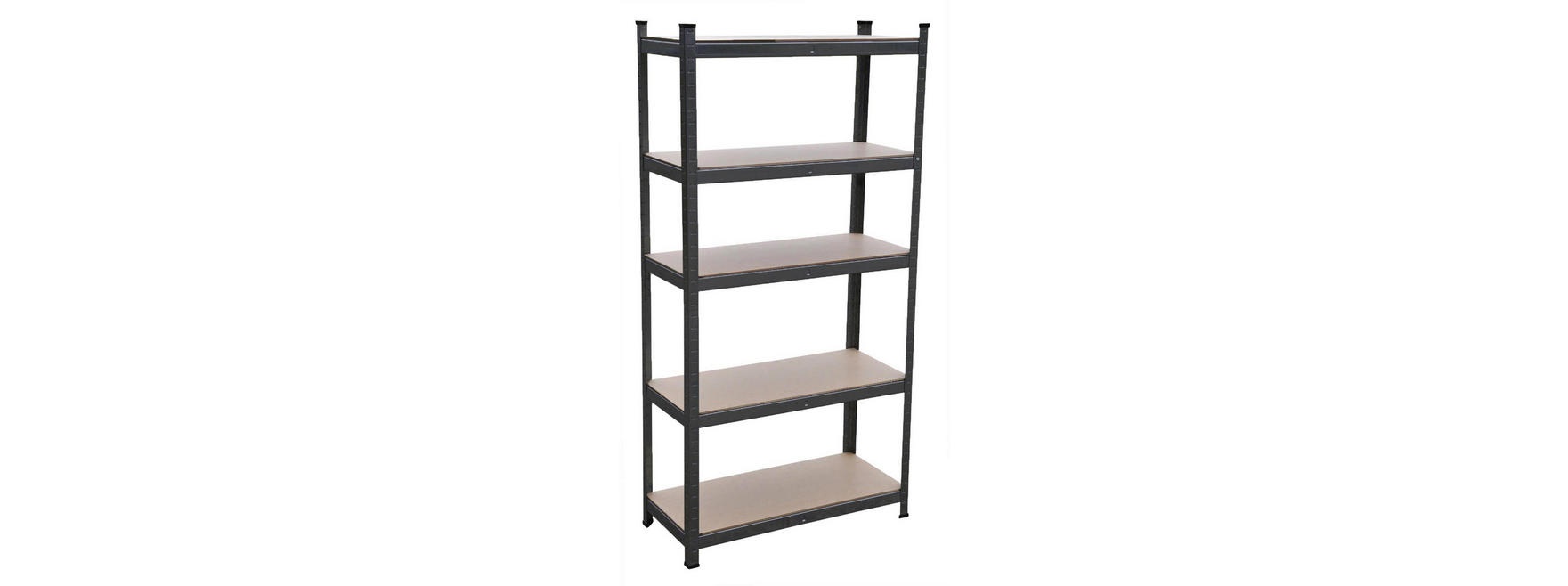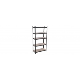 Na výšce cca 180 cm máte k dispozici 5 polic z mdf, které lze výškově vložit dle potřeby. Rám z galvanizované oceli ve šedé barvě zaručuje stabilitu a velkou nosnost cca 875 kg (na každou polici připadá cca 175 kg).