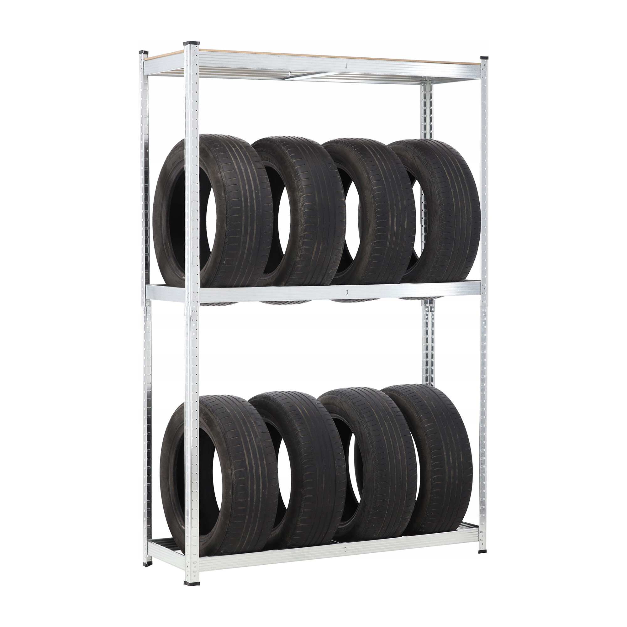 Zorganizujte si svůj garážový prostor, dílnu nebo sklad díky pevnému regálu, navrženému speciálně pro skladování pneumatik a dalších předmětů.