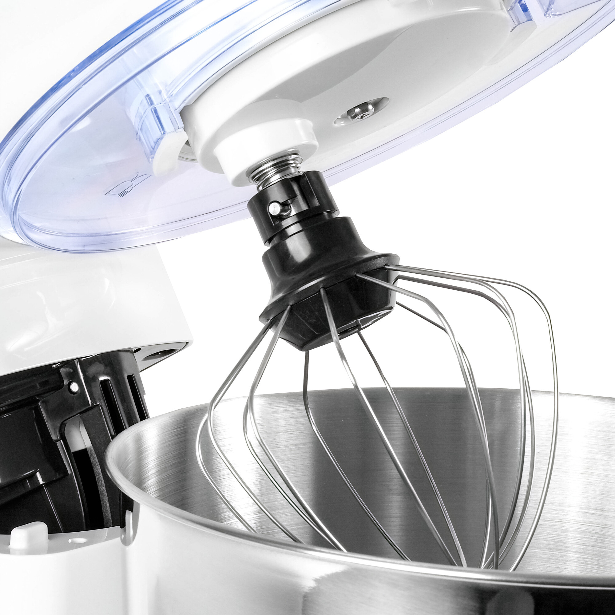 • Příslušenství v balení: hnětací hák, míchací metla, šlehací metla, průhledný kryt mísy