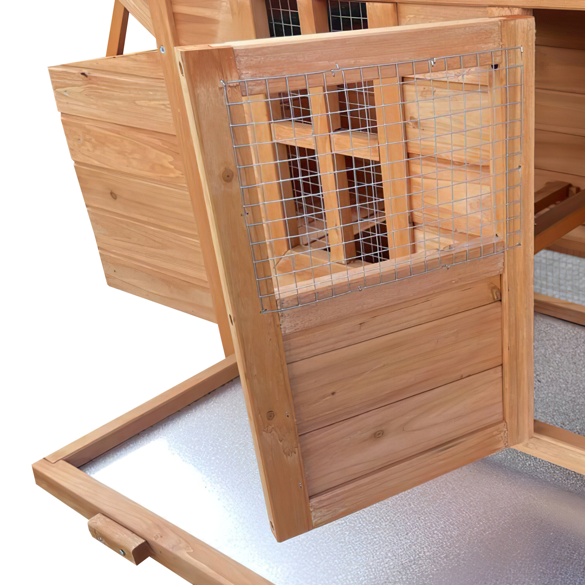 Jednou z hlavních výhod tohoto kurníku je sklápěcí střecha, která umožňuje snadný přístup k vejcím. Už žádné složité ohýbání a natahování jednoduše zvednete střechu a vejce jsou na dosah ruky.