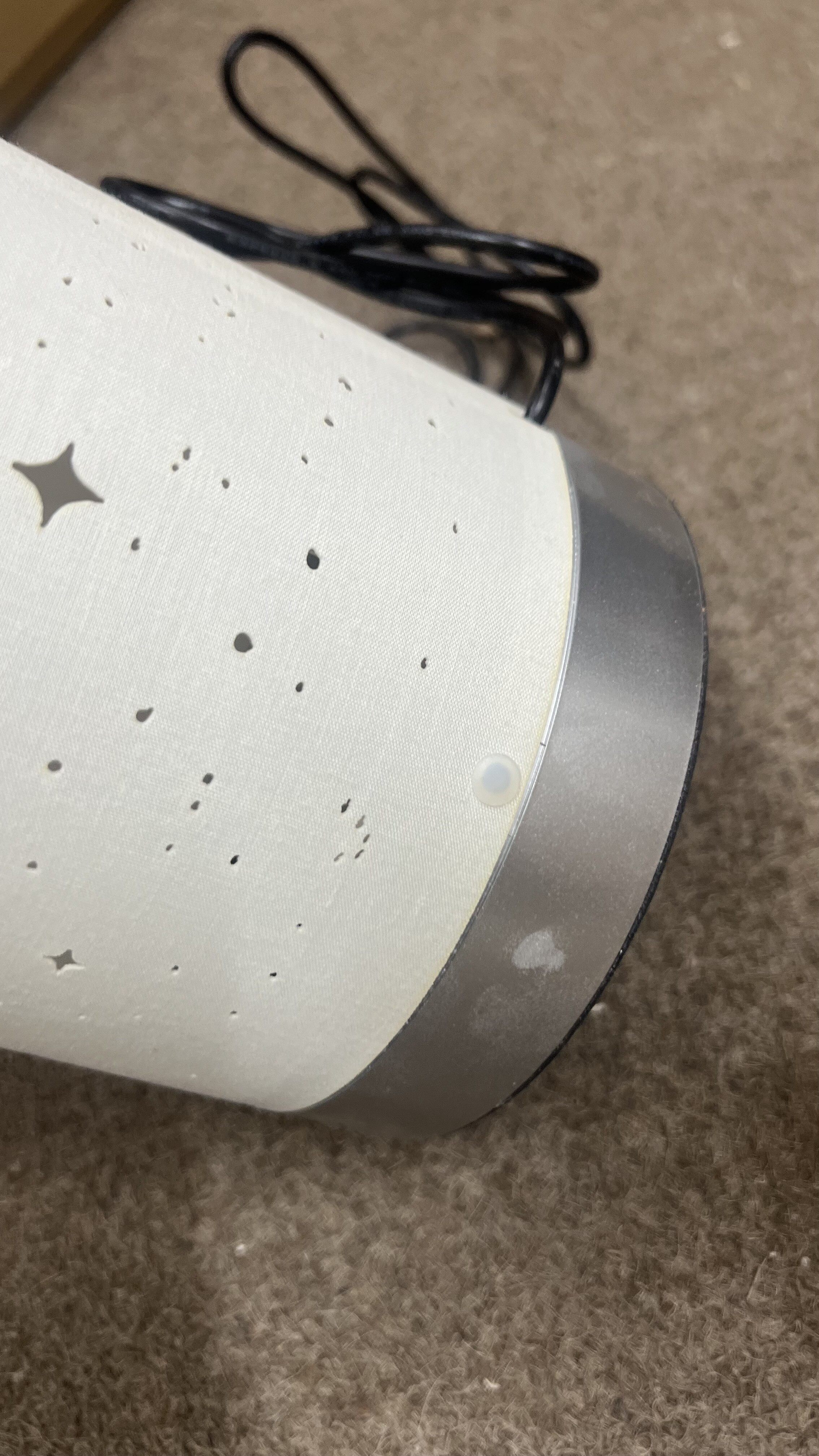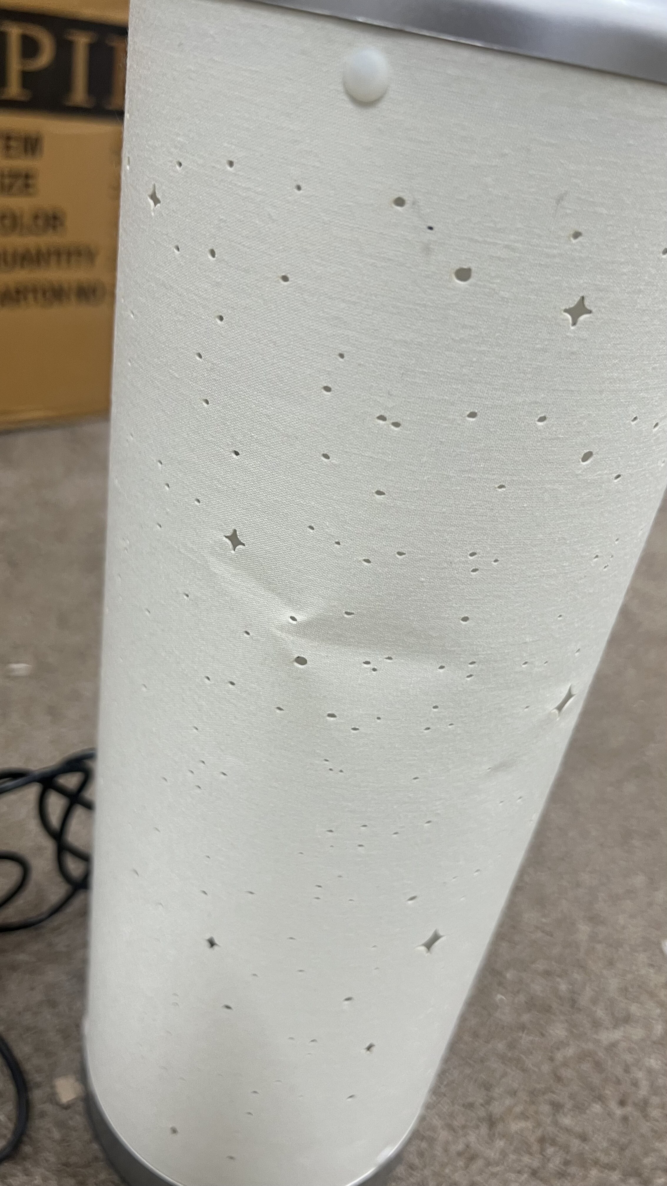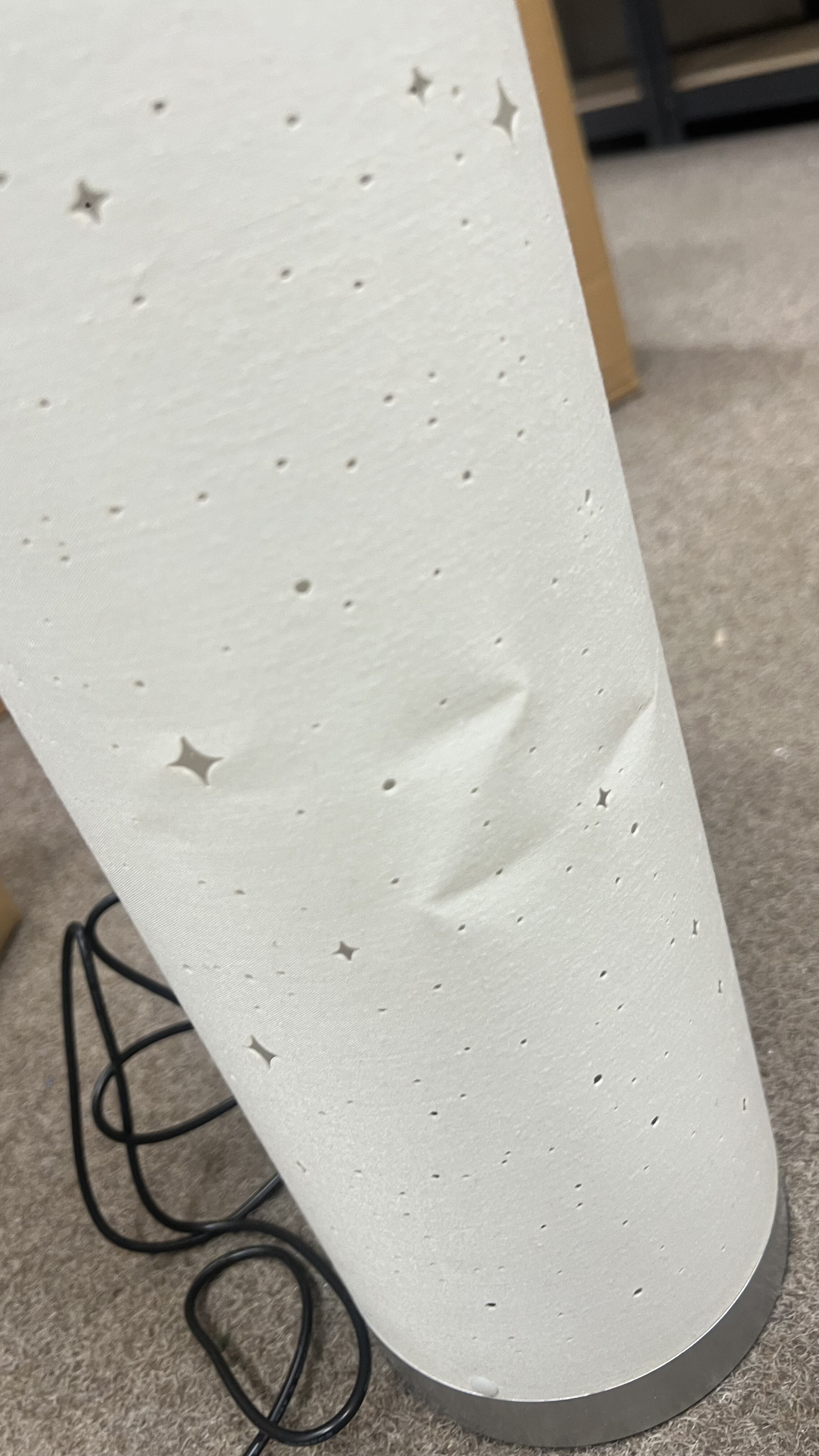Lampa má poškozený kryt a několik promáčklin. Uvedené nedostatky nemají vliv na funkčnost ani bezpečné používání lampy.