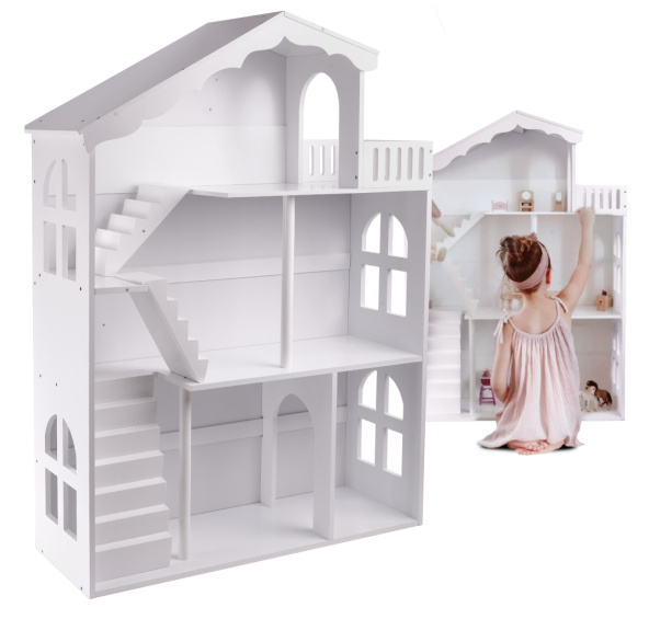 Senzační knihovna ve tvaru domečku. Skvěle zapadne do každého dětského pokoje. Krásný design upoutá pozornost vašeho děťátka. Knihovna se skládá ze 3 pater, která lze použít jako kus nábytku nebo domeček pro panenky. Výška: 116 cm. Šířka: 82,5 cm.