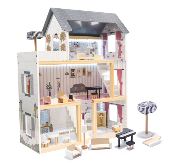 Krásný dřevěný domeček pro panenky v moderním stylu bude splněným snem každého dítěte .
