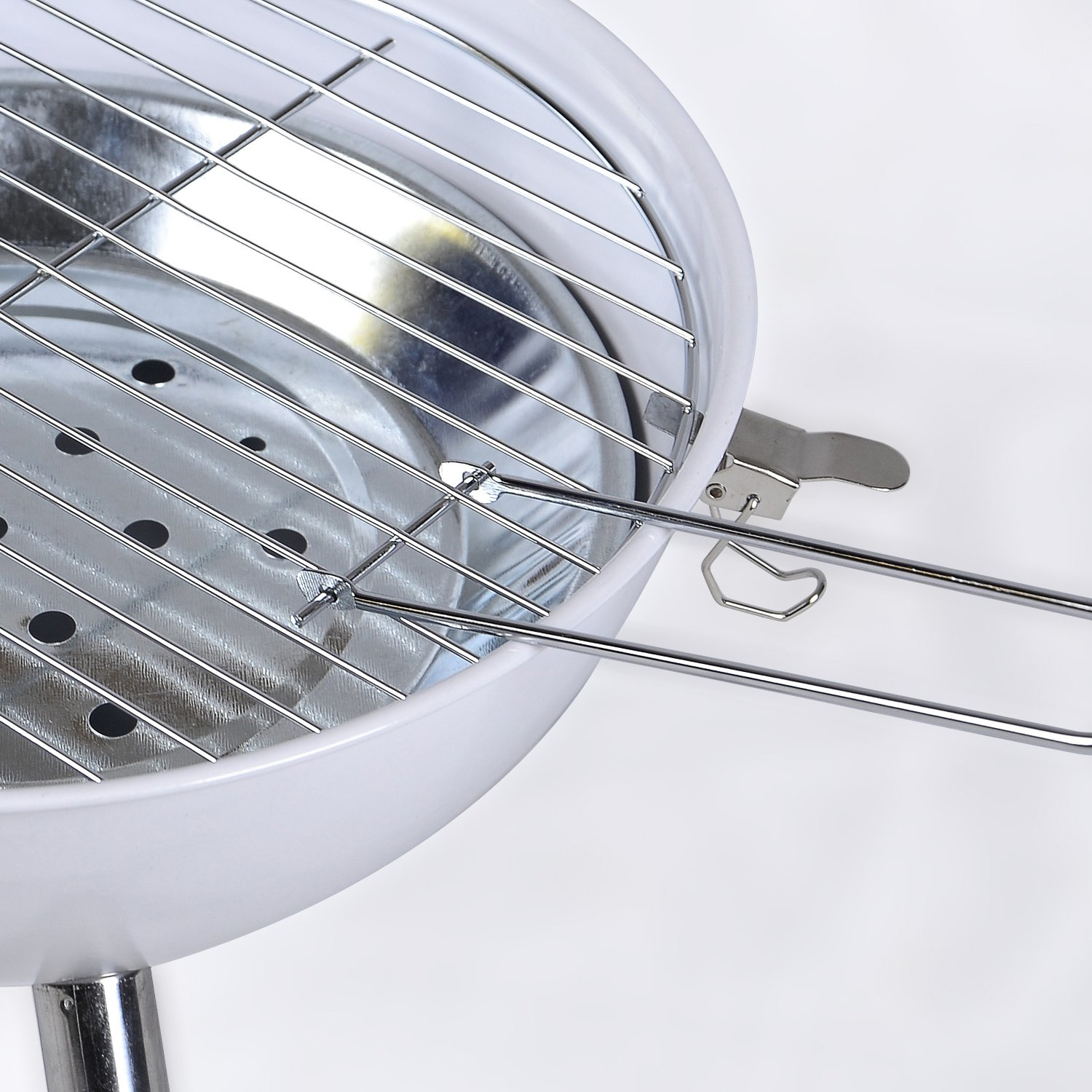 Gril disponuje chromovým roštem a poklicí. Díky třem nosným nožičkám možné gril položit na téměř jakoukoliv podložku.