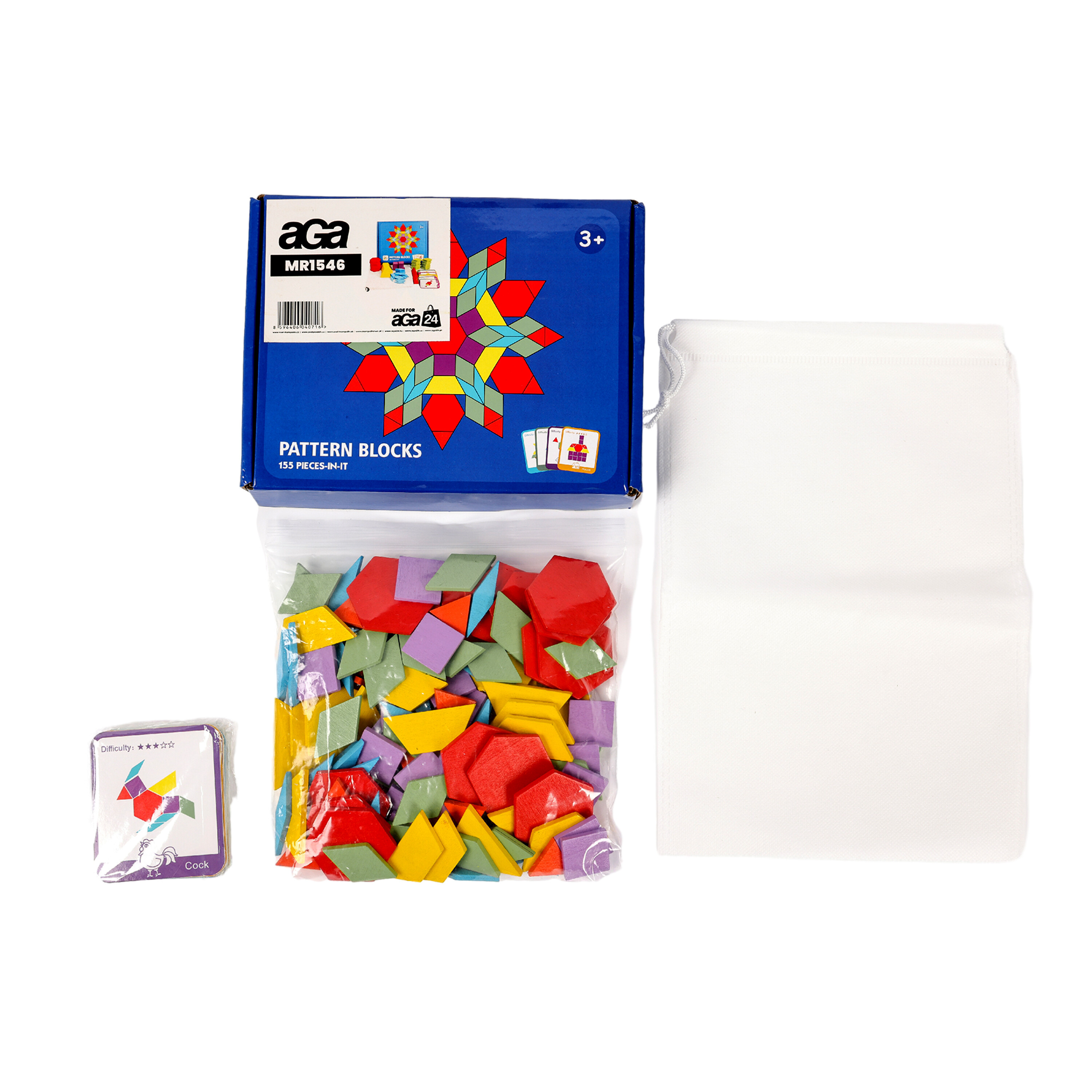 • Set obsahuje 155 dřevěných kostek v 6 tvarech, 24 karet se vzory 5 úrovní obtížnosti, sáček na uložení kostek