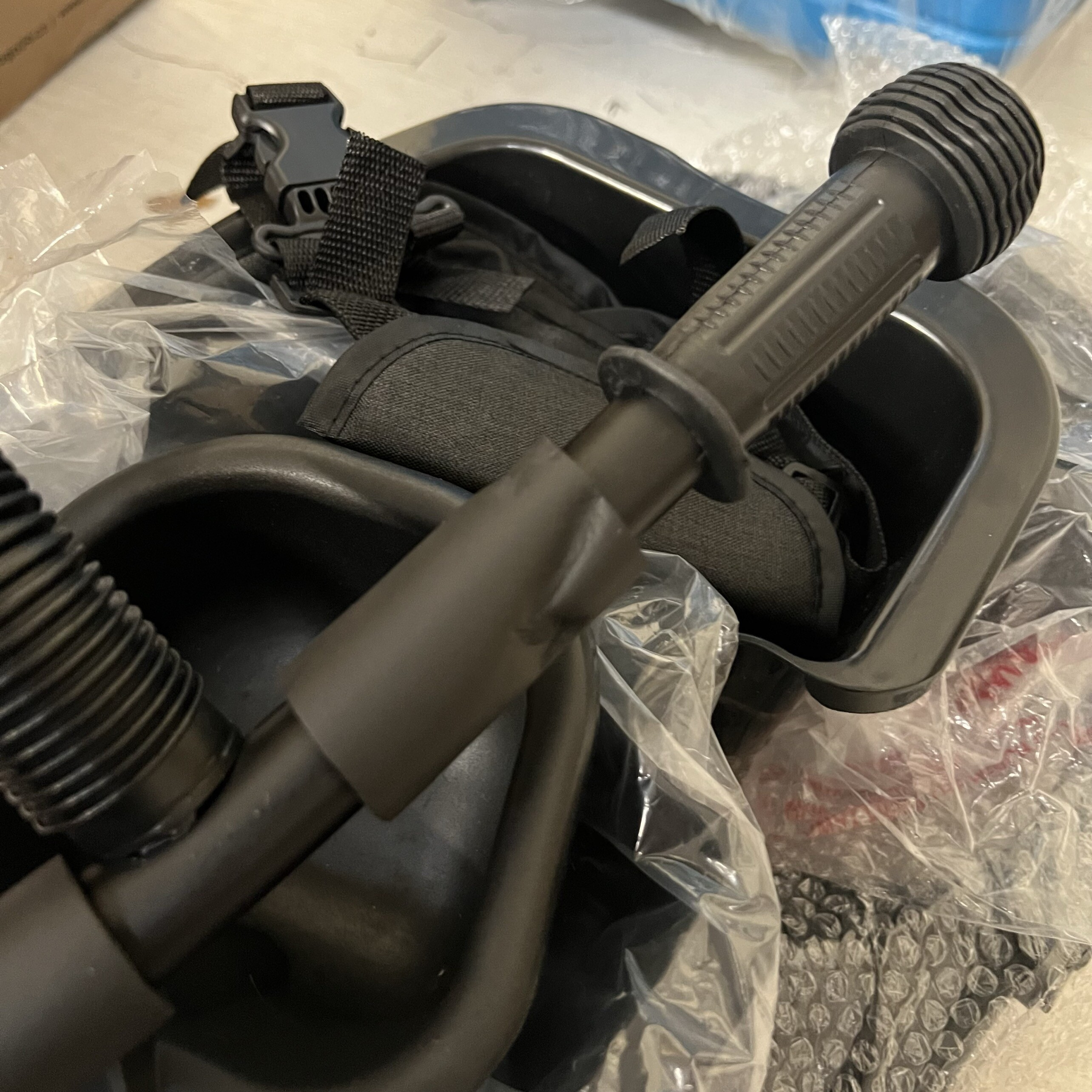 Ergonomicky tvarovaná řídítka s protiskluzovými rukojetí určená pro rodiče