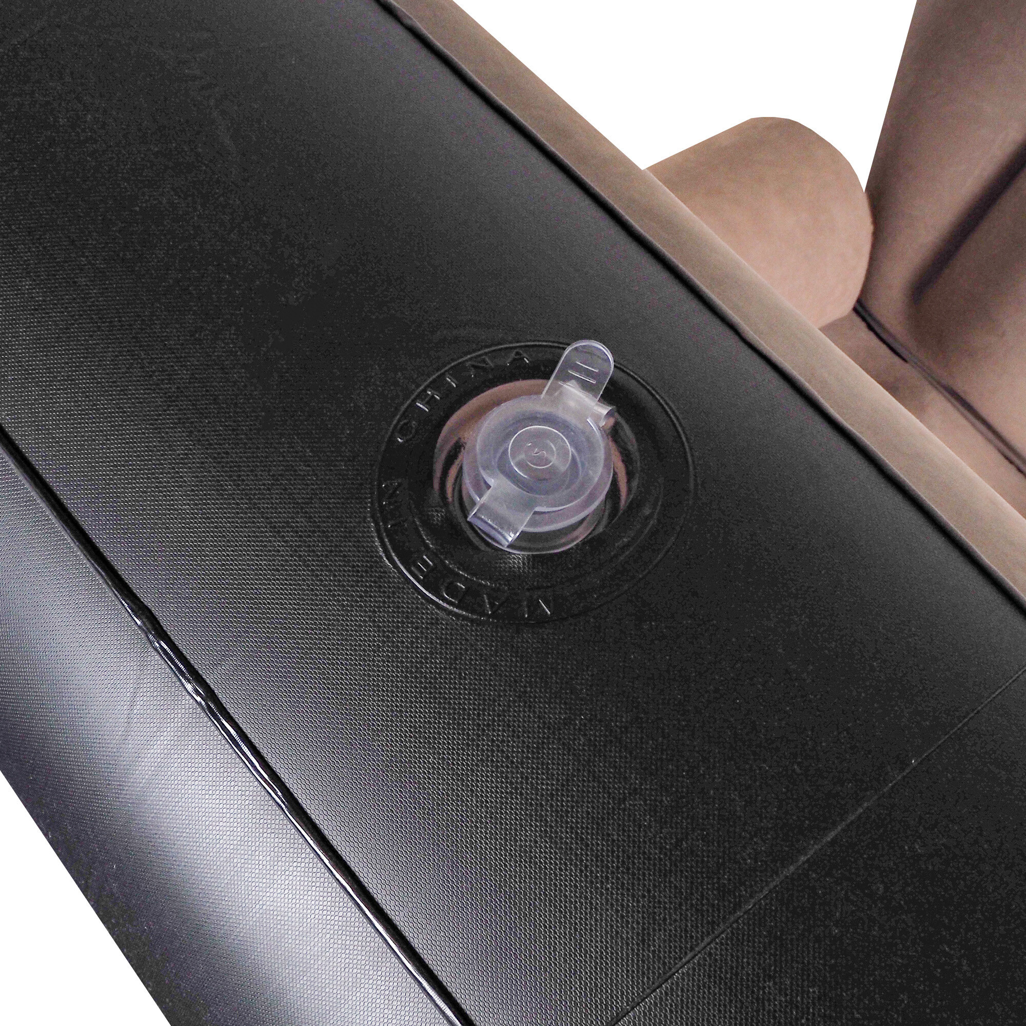 Křeslo se vyznačuje mimořádným pohodlím. Je vyrobeno z pevného a vůči propíchnutí odolného PVC a jeho sedák je potažen měkkou látkou imitující velur.
