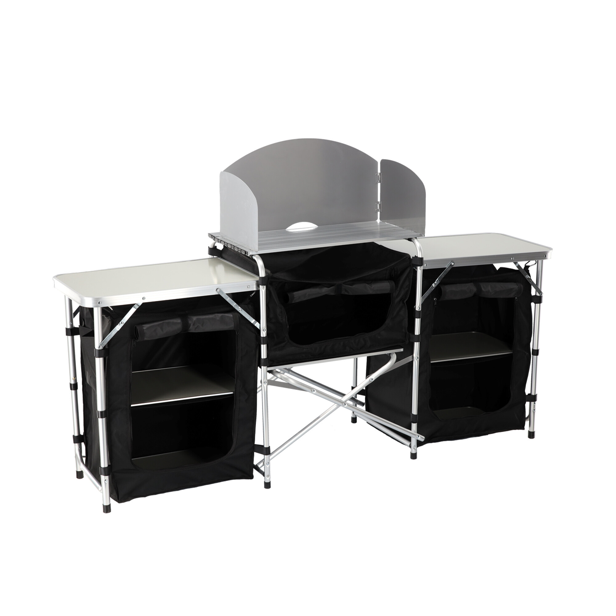 Stolek je vybaven velkým třídílným organizérem na zip, který je součástí balení. Tento organizér je ideální pro ukládání kuchyňských potřeb, jídla, nebo jakýchkoliv dalších předmětů, které potřebujete mít při kempování po ruce. Organizér je snadno přístupný a pomáhá udržet věci organizované a snadno dostupné.