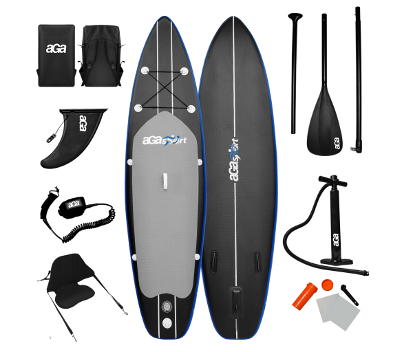 V balení najdete vše, co pro vyražení na vodu můžete potřebovat: trojdílné hliníkové pádlo s nastavitelnou délkou, sedátko, pumpu s tlakoměrem, bezpečnostní lanko na nohu - leash, ploutev, opravná sada a taška na přenos paddleboardu.