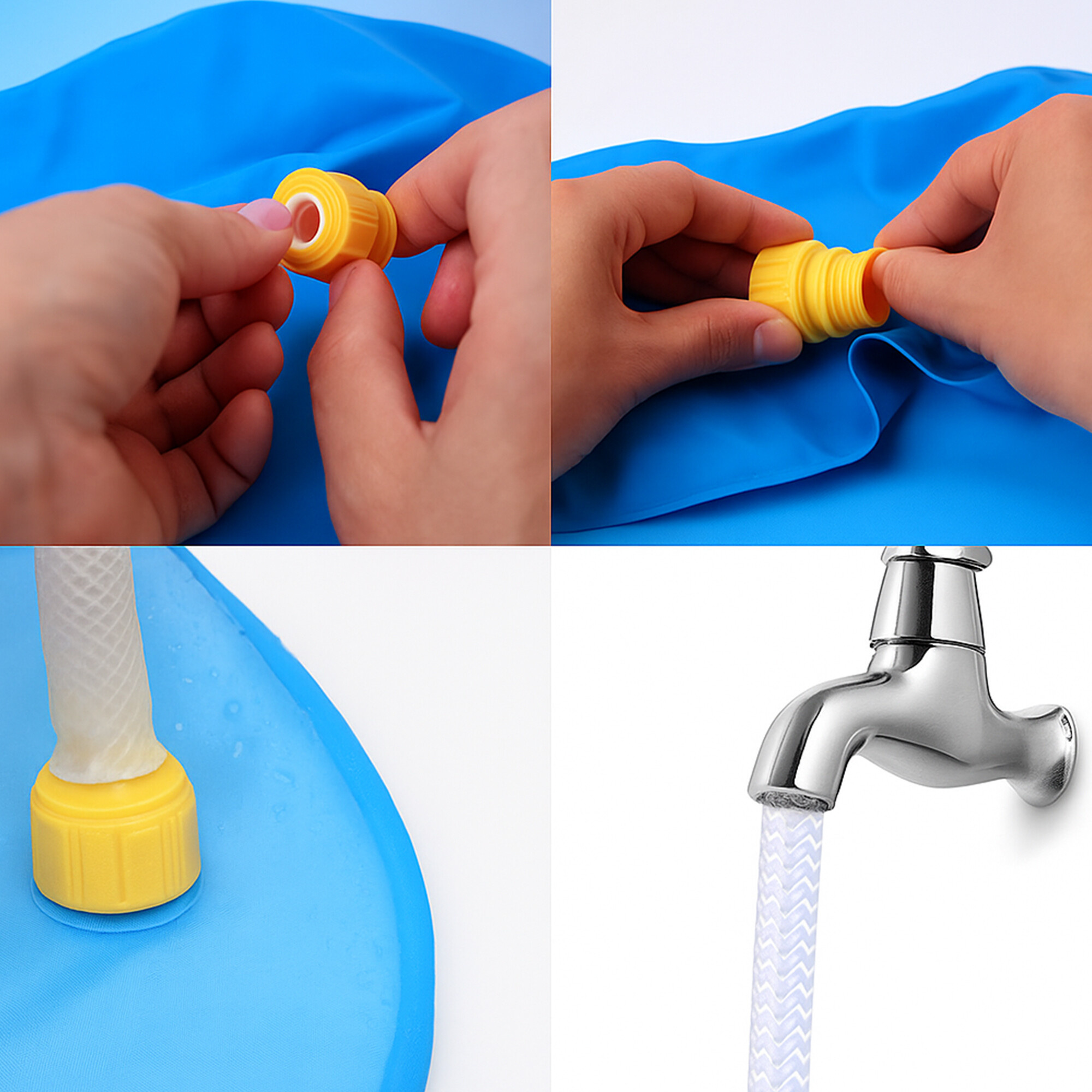 Instalace je velmi jednoduchá – stačí připojit zahradní hadici a můžete si užívat vodního osvěžení. Díky speciálnímu protiskluzovému povrchu je podložka bezpečná i na kluzkém terénu.