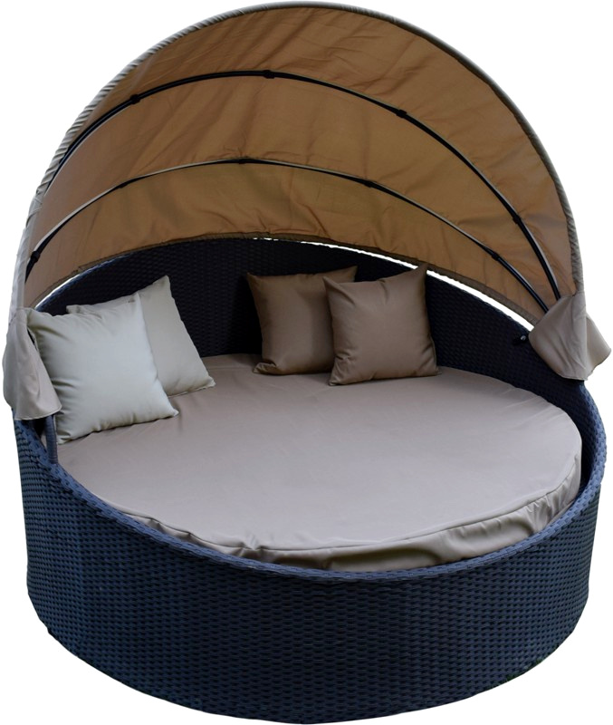 Luxusní zahradní multifunkční pohovka, která poskytuje dostatek místa pro tři osoby. Pohovka je vybavena sluneční clonou, která je odklápěcí.