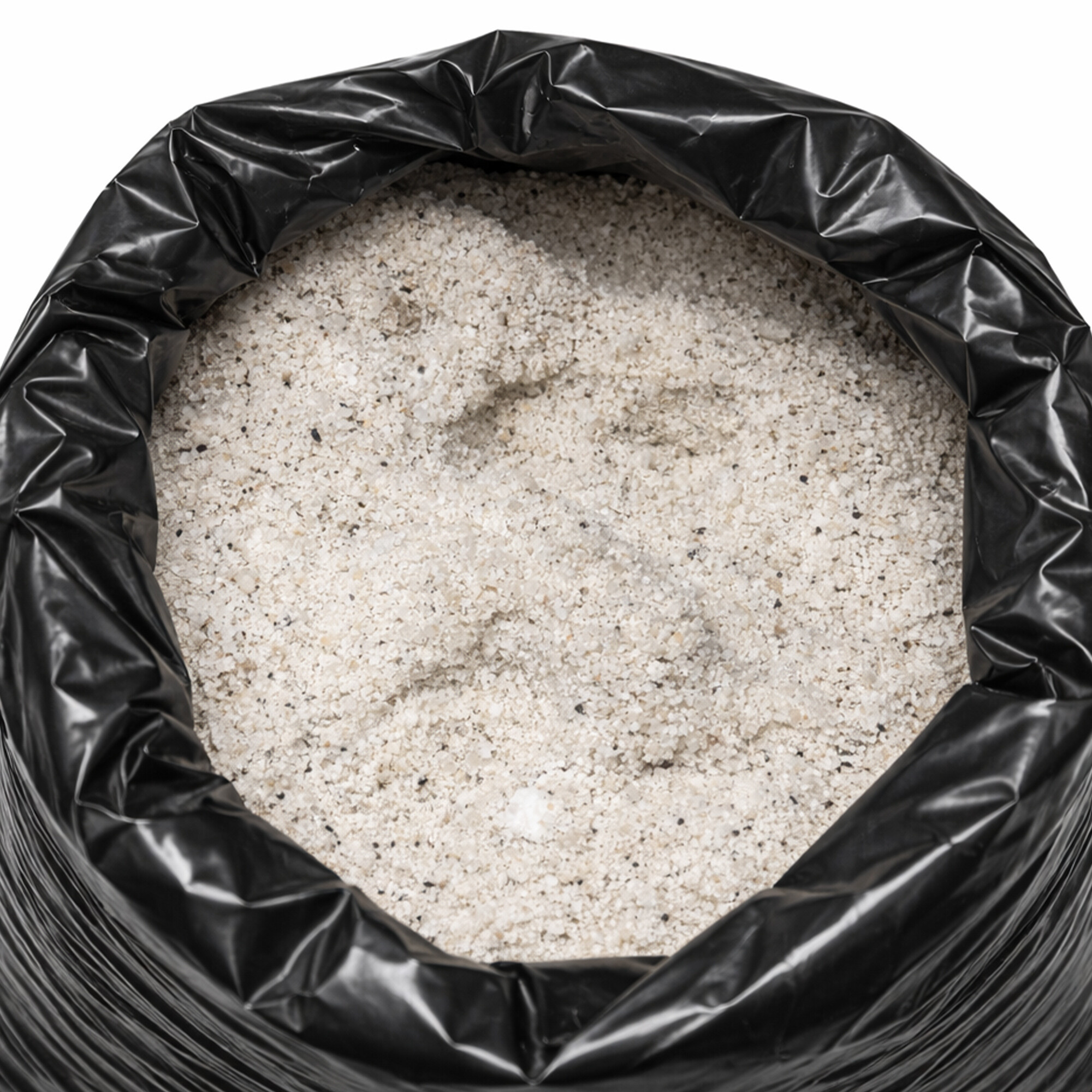 Balení obsahuje 25 kg posypové soli v pevném černém pytli, který je svázán pro bezpečné skladování a manipulaci.