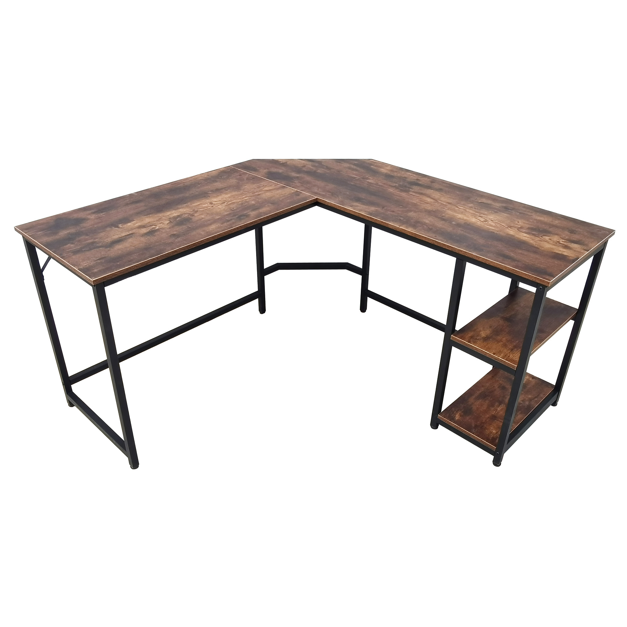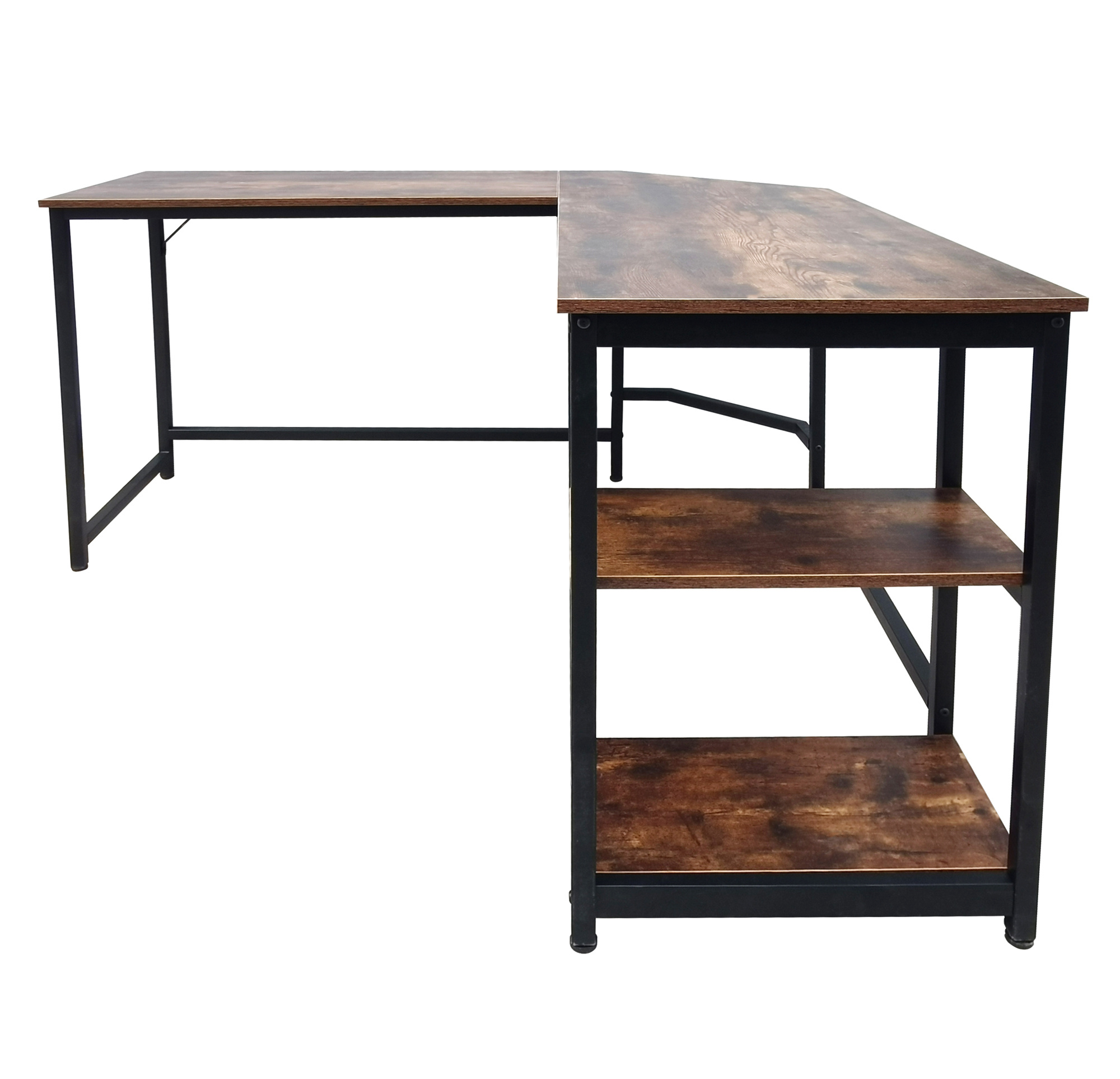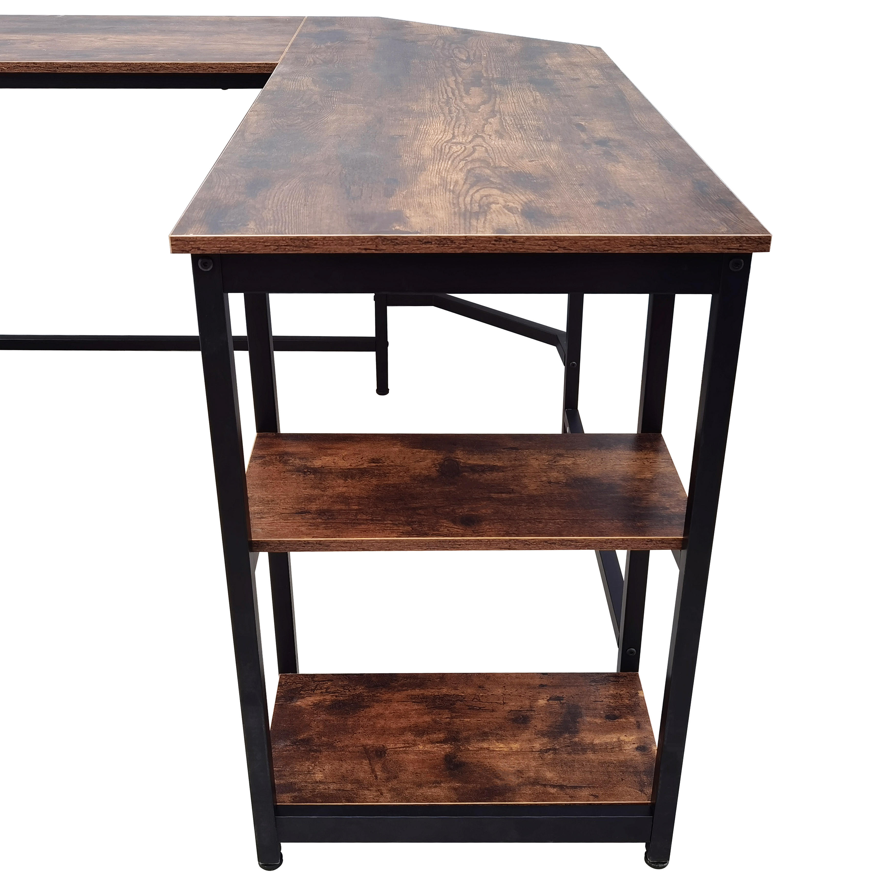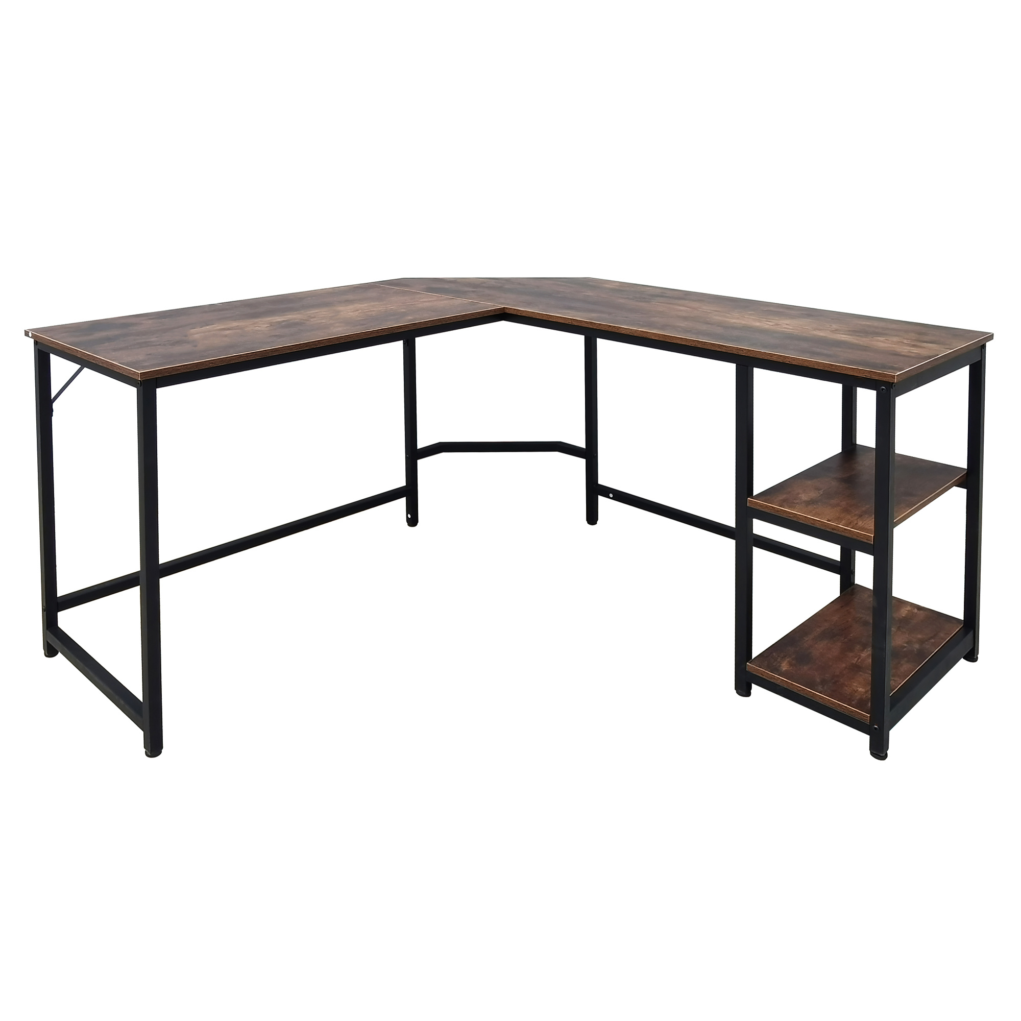 Tento psací stůl ve tvaru písmene L kombinuje robustní kovový rám s atraktivní stolní deskou s industriálním vzhledem.