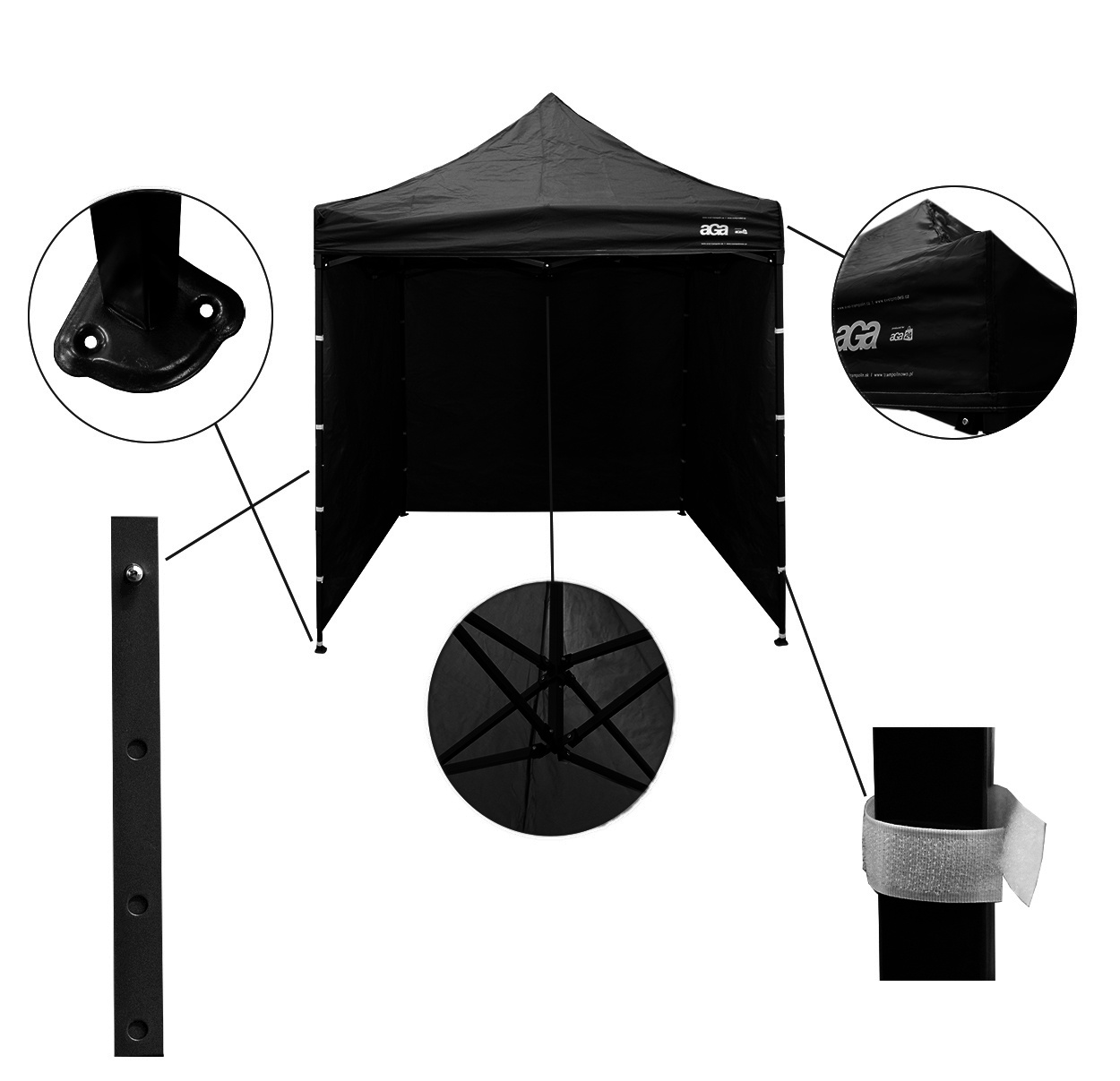 Součástí balení jsou 3 odnímatelné bočnice z PVC Oxford 210D, které chrání před větrem i poskytují soukromí. Střecha z 420D PU Oxfordu je odolná vůči povětrnostním vlivům a zaručuje dlouhou životnost. Bočnice se upevňují pomocí suchého zipu instalace i sejmutí je rychlé a jednoduché.