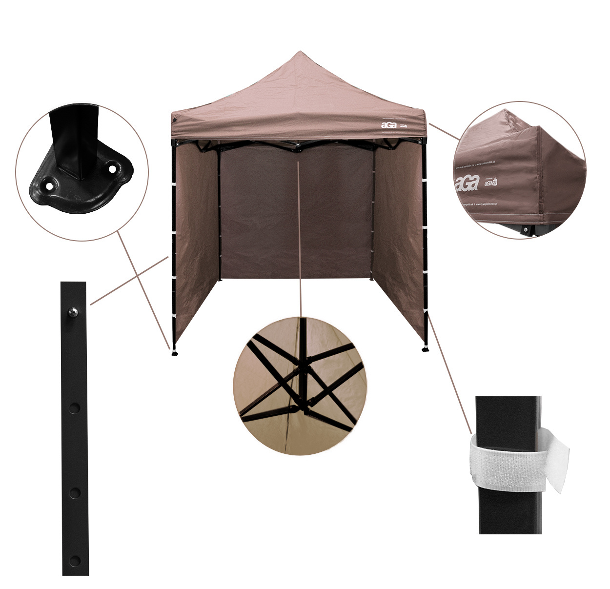 Součástí balení jsou 3 odnímatelné bočnice z PVC Oxford 210D, které chrání před větrem i poskytují soukromí. Střecha z 420D PU Oxfordu je odolná vůči povětrnostním vlivům a zaručuje dlouhou životnost. Bočnice se upevňují pomocí suchého zipu instalace i sejmutí je rychlé a jednoduché.