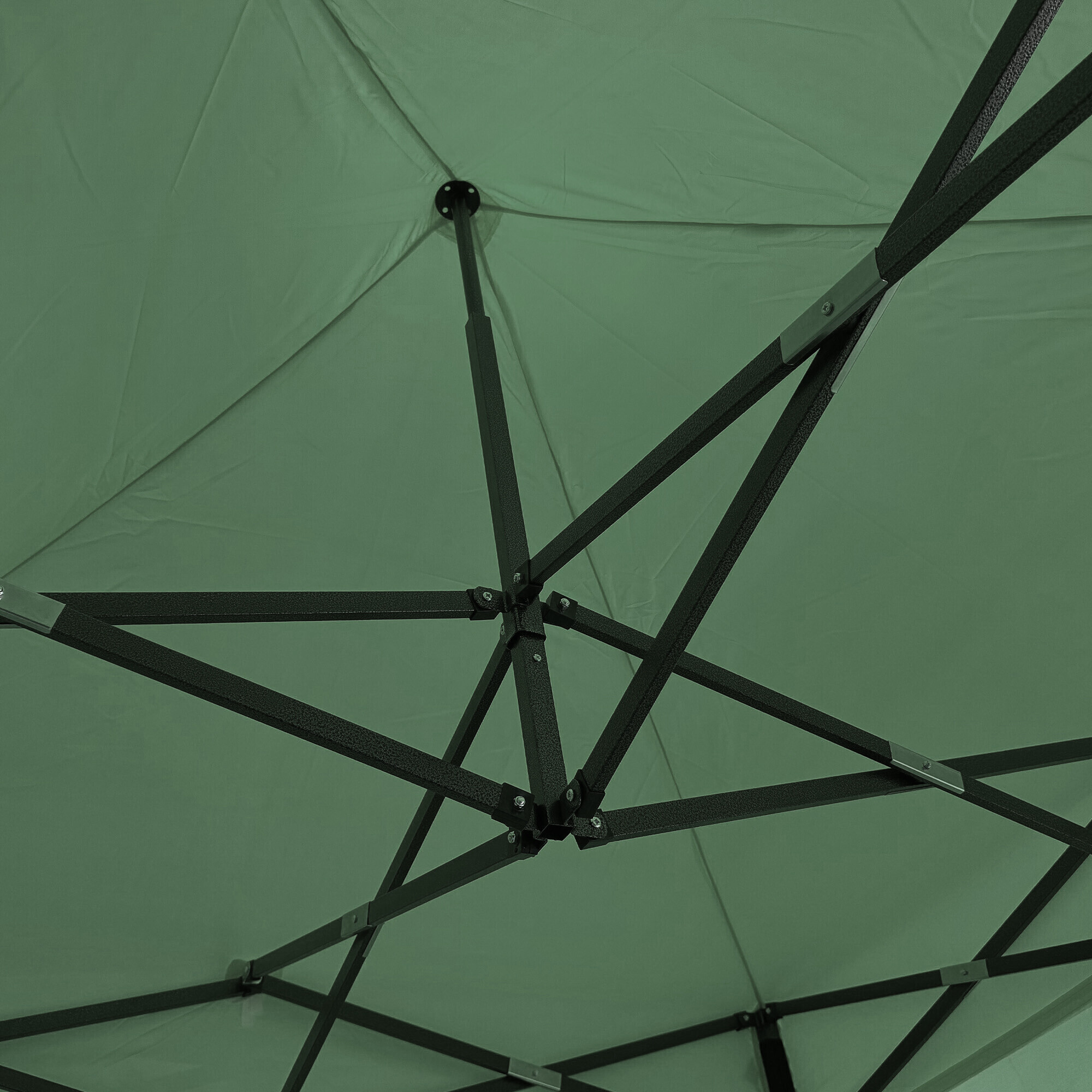 Díky třístupňovému nastavení výšky (celková výška 213–290 cm, průchozí 186–204 cm) se stánek snadno přizpůsobí aktuálním podmínkám a nabízí pohodlí při každém použití.