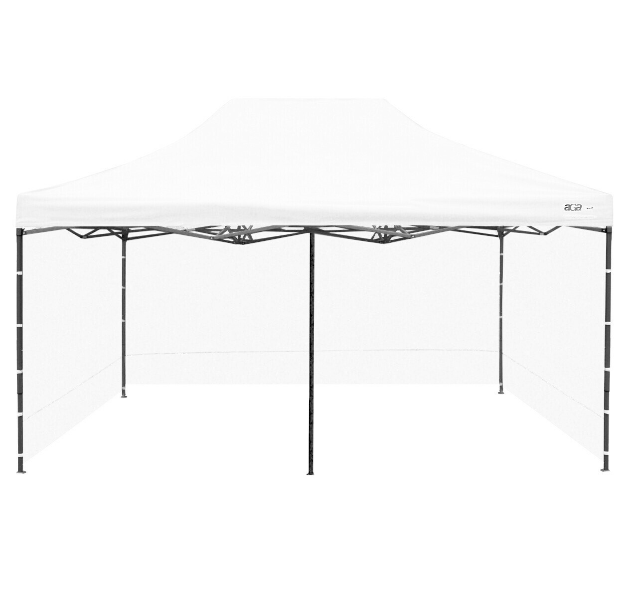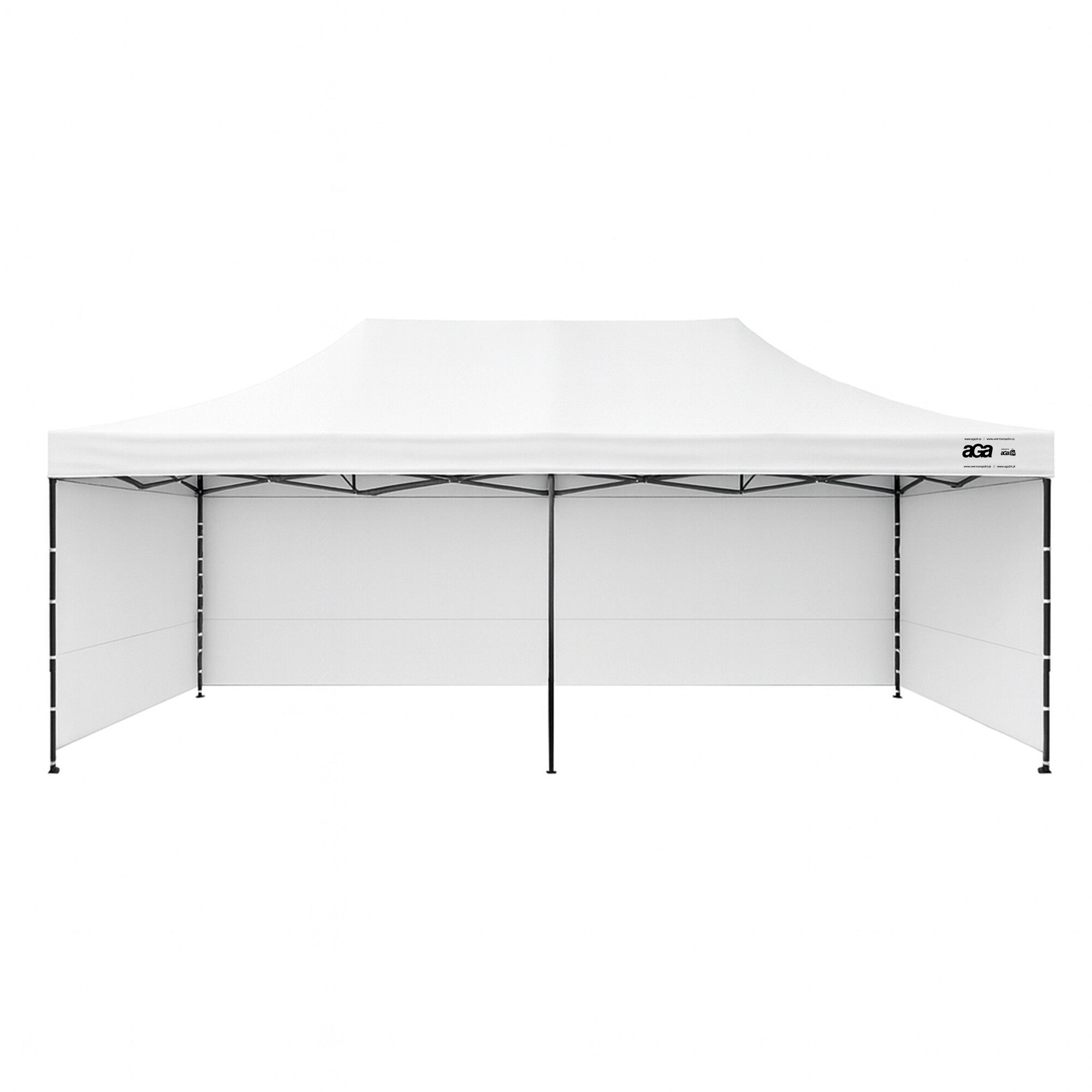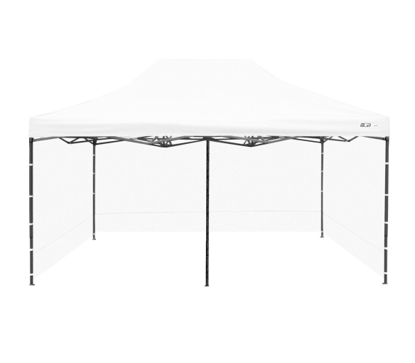 Konstrukce je vyrobena z práškově lakované oceli se šroubovanými spoji, které dodávají stánku stabilitu a pevnost i při častém používání. Patky na nohách umožňují bezpečné ukotvení k povrchu. Součástí provedení je také středová noha, která rovnoměrně rozkládá zatížení konstrukce, zvyšuje stabilitu a snižuje průhyb střechy u velkého rozměru 3×6 m.