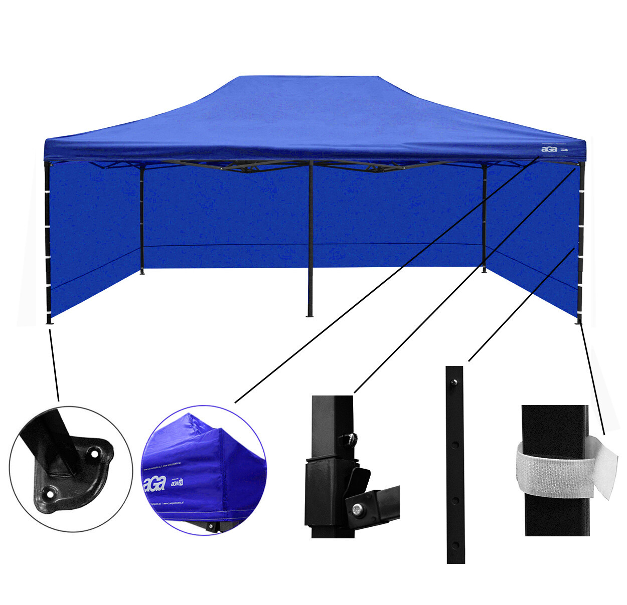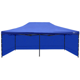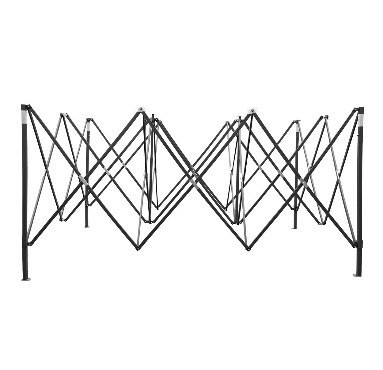 Konstrukce je vyrobena z práškově lakované oceli se šroubovanými spoji, které dodávají stánku stabilitu a pevnost i při častém používání. Patky na nohách umožňují bezpečné ukotvení k povrchu. Součástí provedení je také středová noha, která rovnoměrně rozkládá zatížení konstrukce, zvyšuje stabilitu a snižuje průhyb střechy u velkého rozměru 3×6 m.