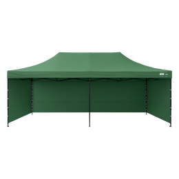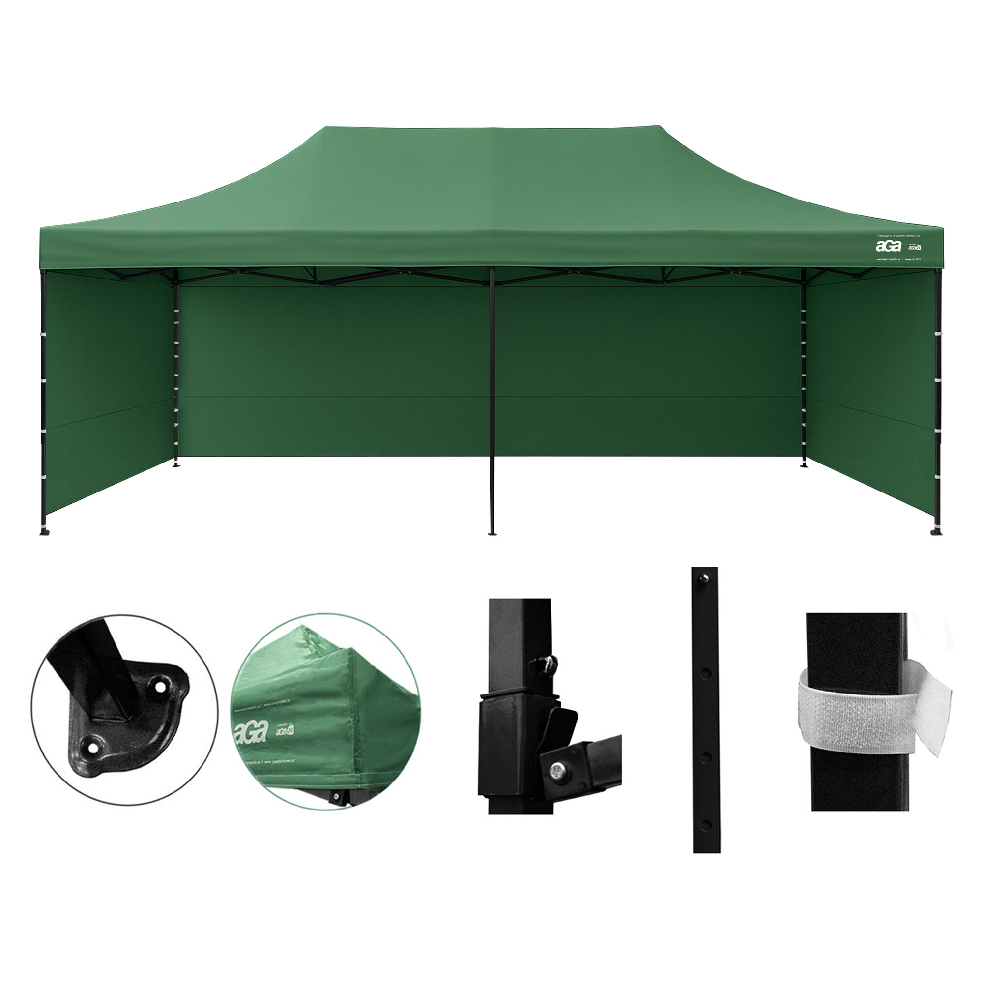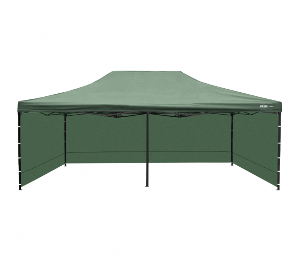 Konstrukce je vyrobena z práškově lakované oceli se šroubovanými spoji, které dodávají stánku stabilitu a pevnost i při častém používání. Patky na nohách umožňují bezpečné ukotvení k povrchu. Součástí provedení je také středová noha, která rovnoměrně rozkládá zatížení konstrukce, zvyšuje stabilitu a snižuje průhyb střechy u velkého rozměru 3×6 m.