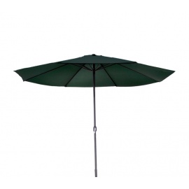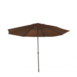 Půlkruhový zahradní slunečník s pevnou konstrukcí a kvalitním potahem, vyrobeným z odolného polyesterového materiálu.