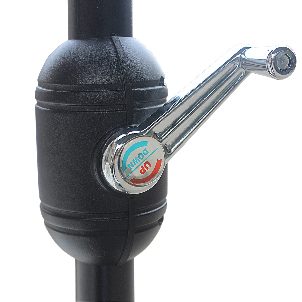 Snadnou manipulaci při rozkládání a skládání slunečníku zajišťuje jednoduchý klikový mechanismus.