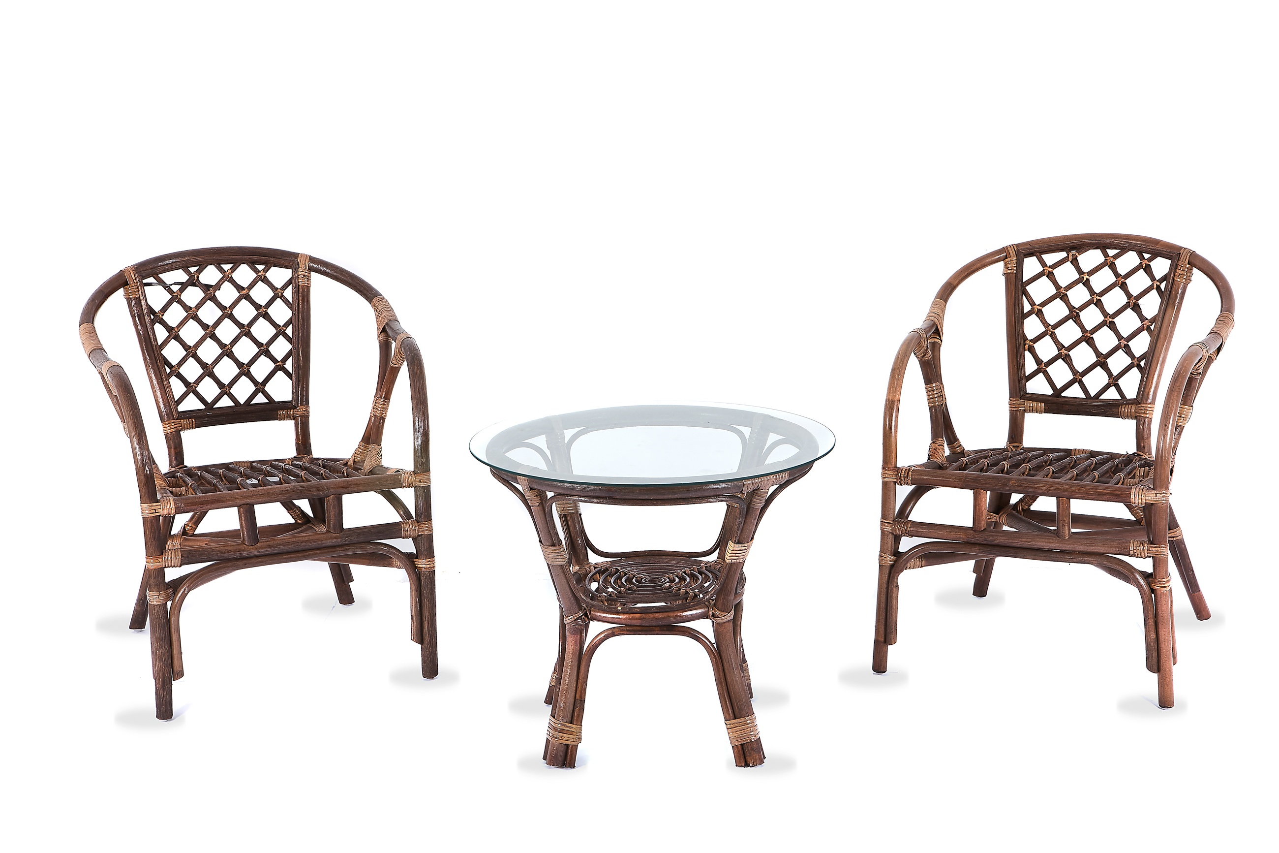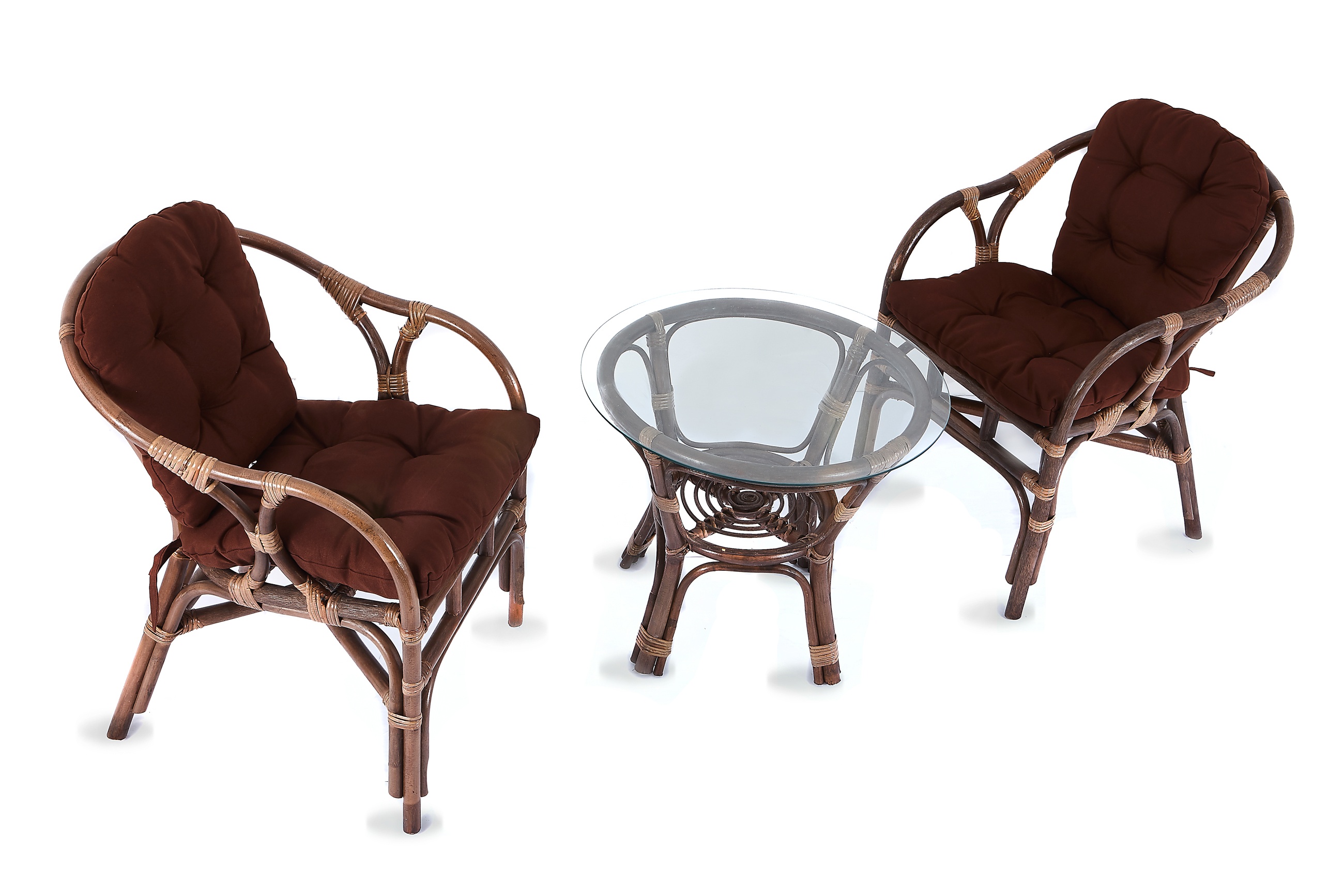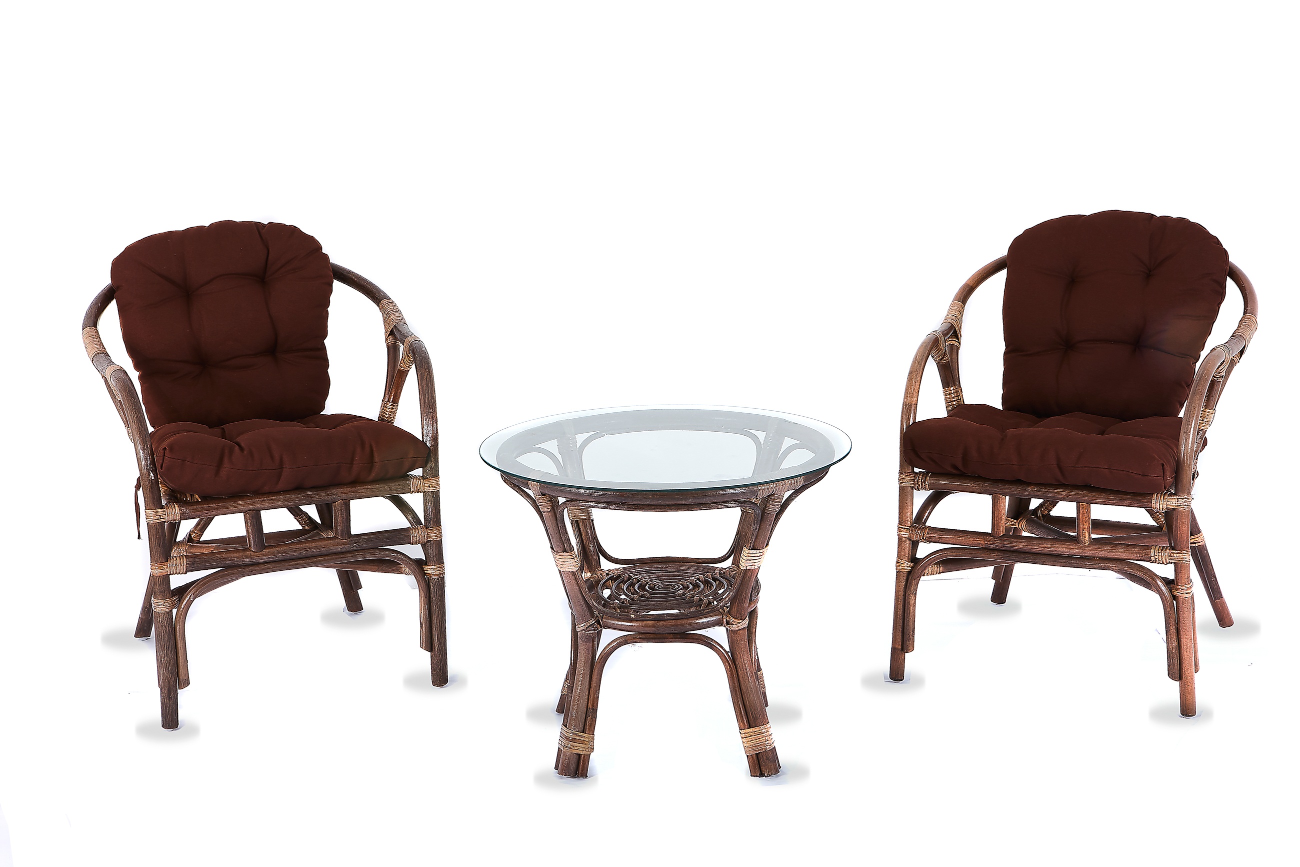 Kolekce obsahuje 2 ratanová křesla, a ratanový stolek se skleněnou deskou. Stolek má ve spodní části plochu na ukládání drobných věcí.