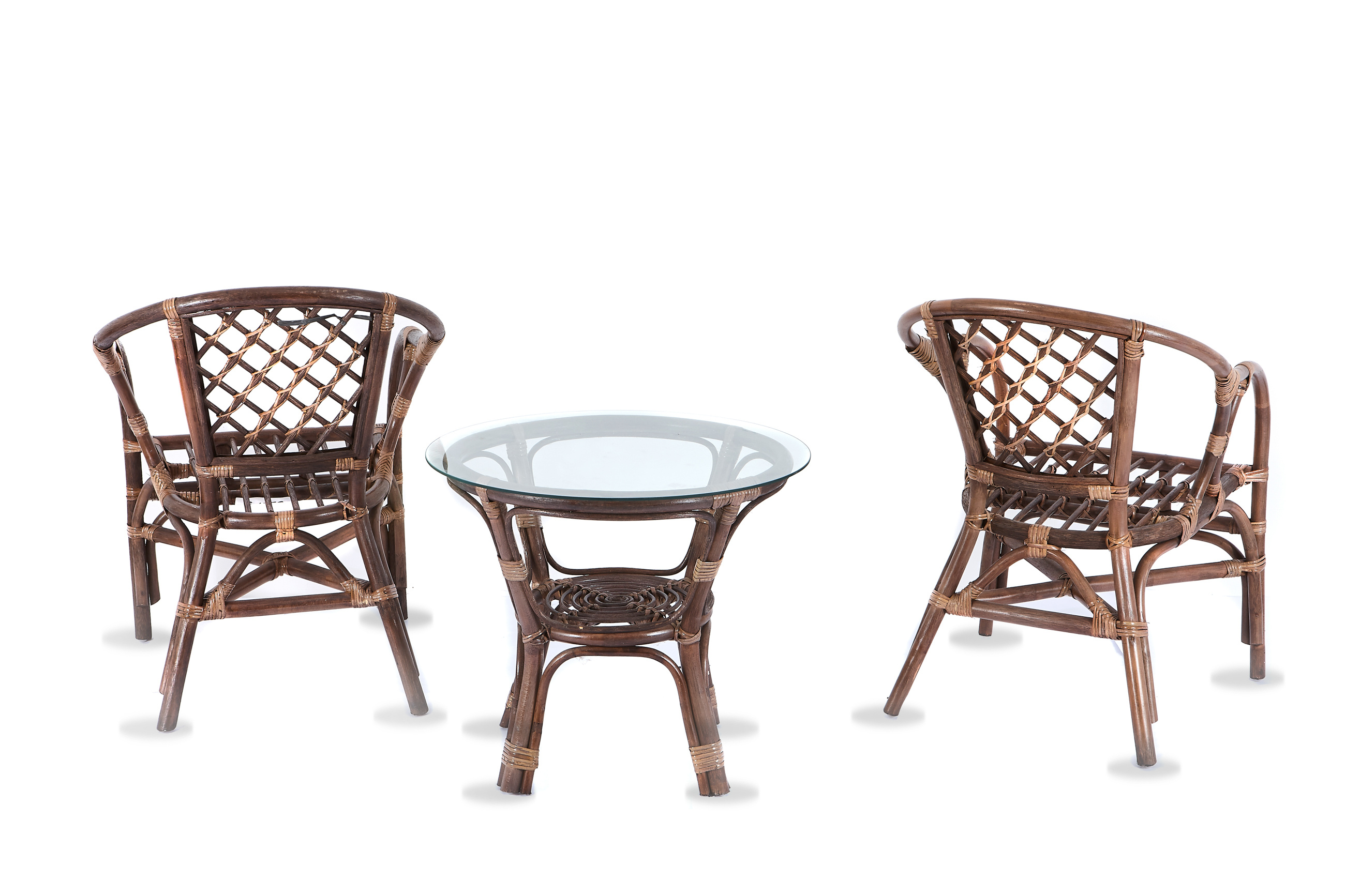 Kolekce obsahuje 2 ratanová křesla, a ratanový stolek se skleněnou deskou. Stolek má ve spodní části plochu na ukládání drobných věcí.