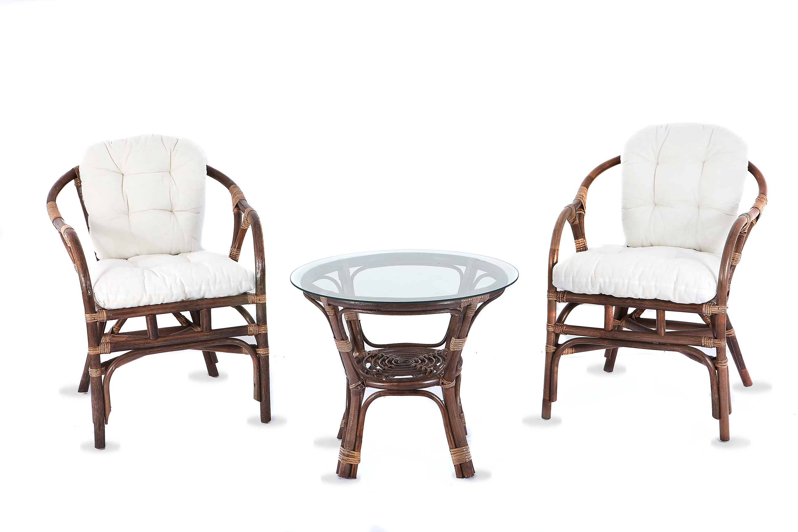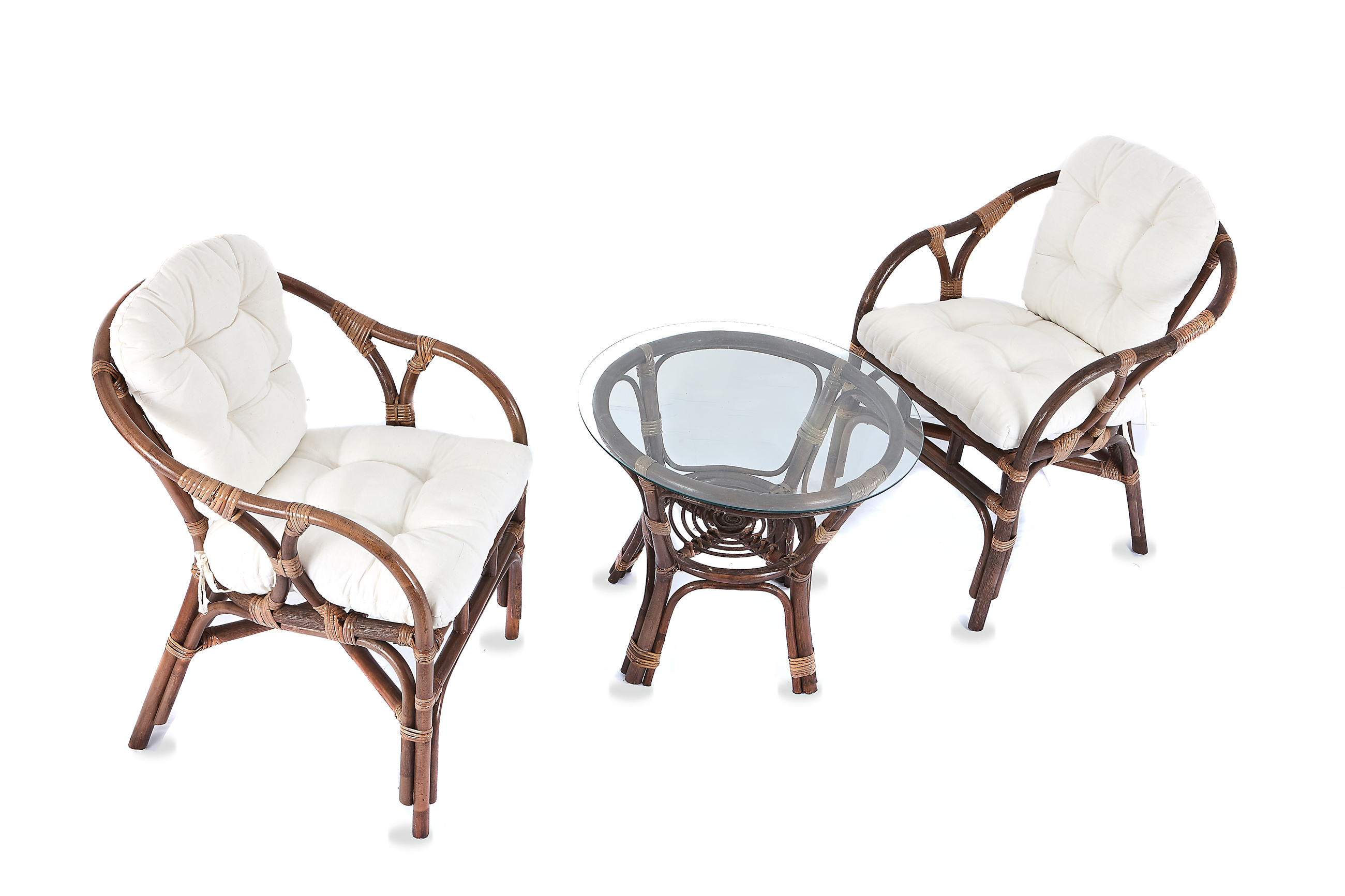 • Sestava obsahuje: Ratanové křesla, stolek se sklem a kompletní sadu polstrů