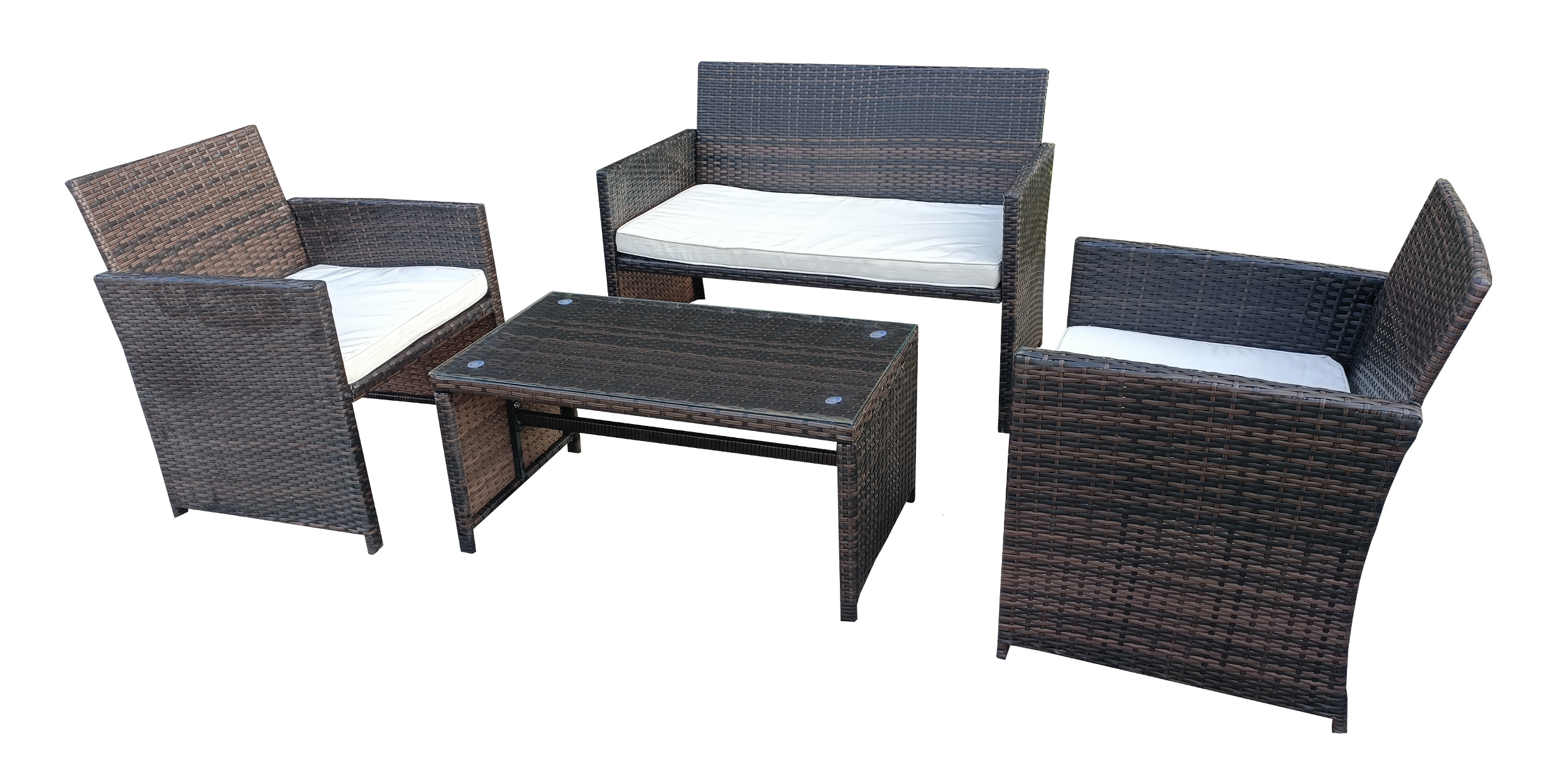 - Sestava obsahuje: Lavici, 2 křesla, stolek se sklem a kompletní sadu polstrů