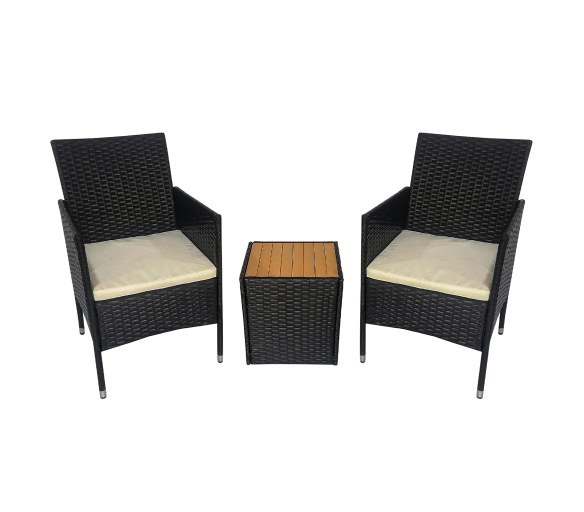 Dvě křesla a stoleček s pevnou ocelovou konstrukcí a polyratanovým výpletem jsou ideální pro venkovní prostory, jako jsou zahrady, terasy a balkóny, také se hodí i do interiéru zimních zahrad.