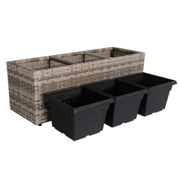 Tento nádherný set zahradního květináče se skládá z 1 ratanového truhlíku a 3 vyjímatelných plastových vnitřních nádob. Ratan je ručně pletený, takže tento květináč bude perfektním doplňkem do vašeho venkovního prostoru.