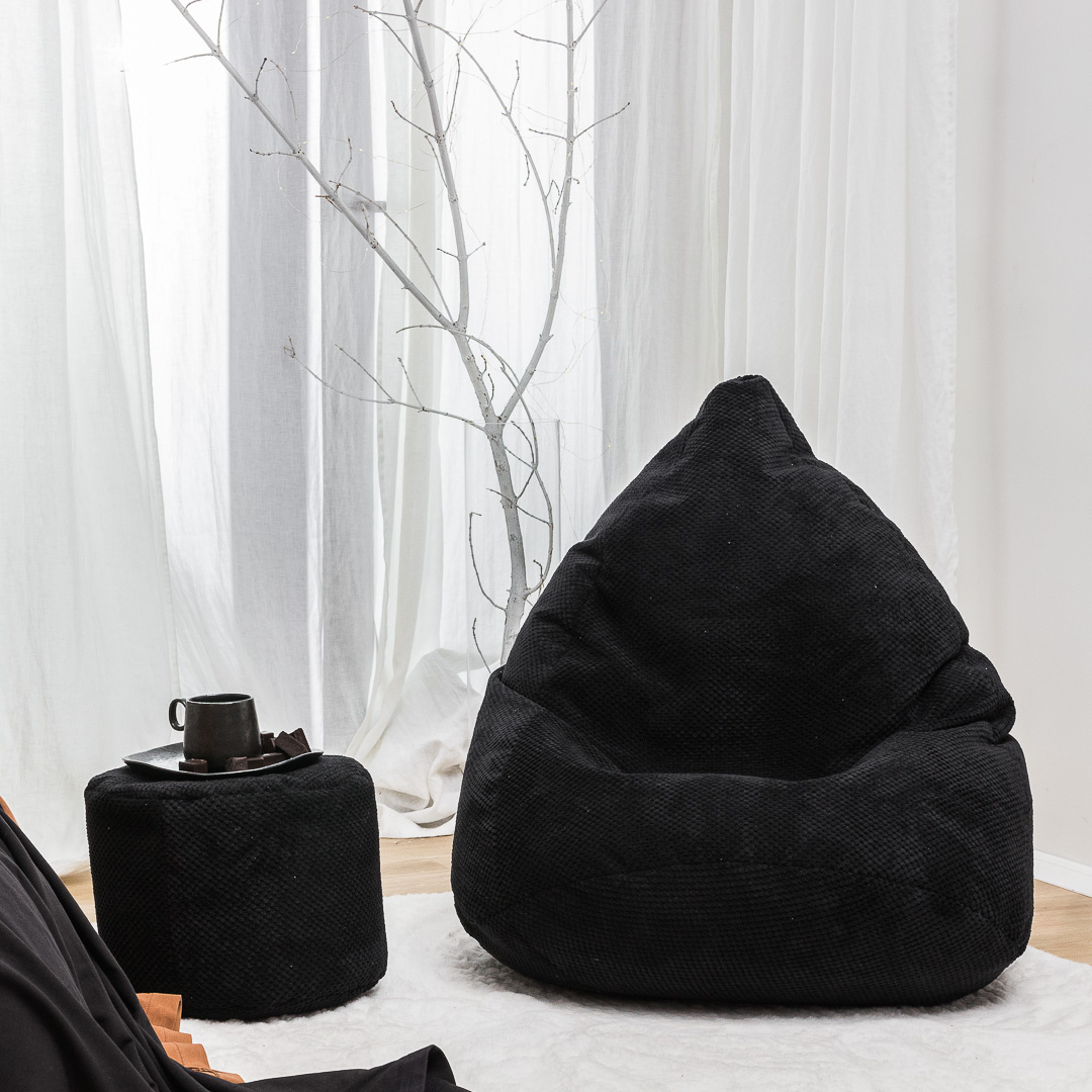 Sedací vak je celý vyroben z kvalitní tkaniny. Je vyplněn polystyren-pěnovými kuličkami, díky tomu se přizpůsobí tvaru siluety osoby sedící nebo ležící.