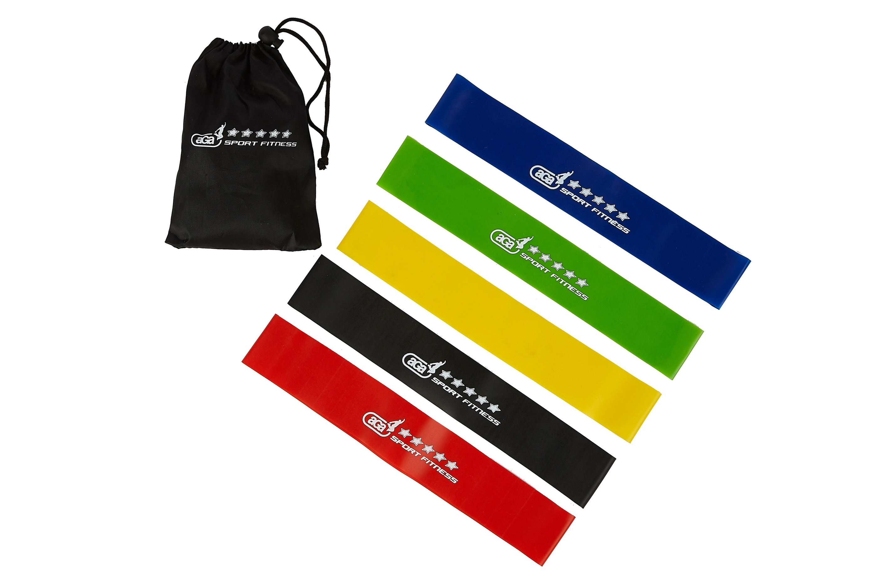 Set s 5 pěti posilovacích gum, které skvěle procvičí celé tělo.
